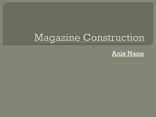 The document discusses how magazine front covers are designed and laid out. It explains that the masthead is prominently displayed in large font at the top left to identify the magazine. The main headline and large central image work together to convey the key article being featured. Additional elements like taglines and anchorage help provide context and meaning. Color schemes, font styles and photo angles are deliberately chosen to attract readers' attention and match the tone of the magazine, which aims to be lively and catch the interest of teenage audiences. Careful use of space throughout the cover effectively presents important information to readers.