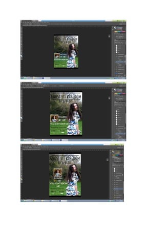 The document discusses the initial ideas and progress made on designing a magazine advertisement. It began with using the same typography as the album cover to identify the new artist and album. Various images and text placements were tested. Techniques like blurring the background and adding glow/shadow were used to draw attention to key words. Feedback was incorporated like adding star ratings and reviews. The final design kept consistency elements while emphasizing "hit" and drawing attention to the album cover image.