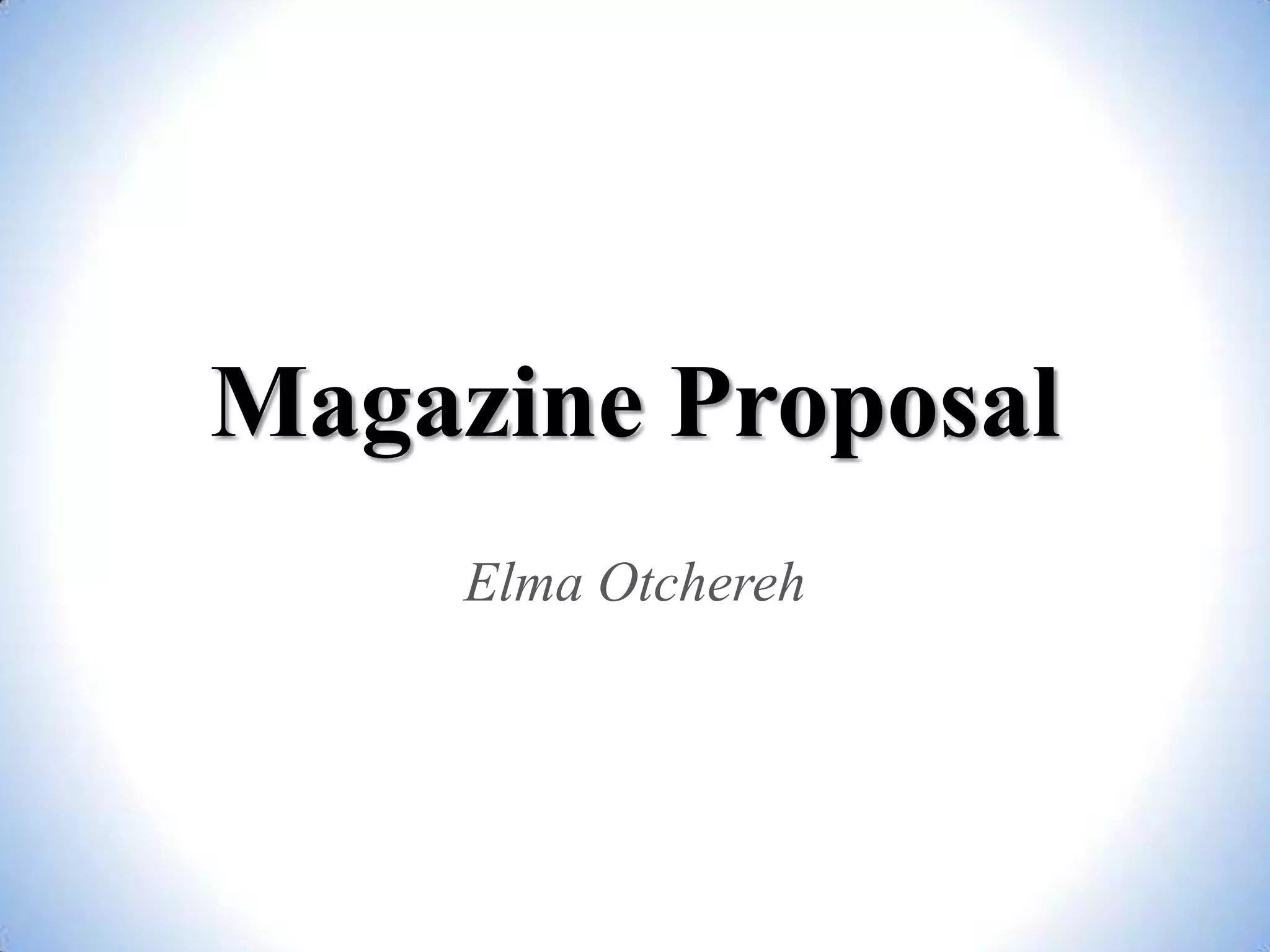 The proposed magazine is called ORIGIN and will focus on RnB and soul music genres. It will include subgenres like urban, hip hop, funk, jazz, and modern soul. Artists featured will be contemporary American artists like Alicia Keys and Beyoncé as well as UK artists like Amy Winehouse and Adele. The magazine will have exclusive interviews, charts, album reviews, and coverage of up-and-coming artists. It will be published bimonthly and will be influenced by the color schemes and layouts of B&S and Q magazines. The target audience is African American and diverse youth aged 16-26.