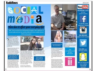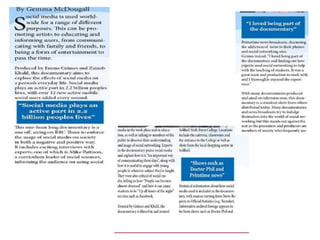 This document provides a step-by-step guide for creating a magazine double page spread (DPS) in InDesign. Key steps included adding a background layer, designing the main title using social media logos, removing backgrounds from images, adding a sidebar with app icons and statistics, and formatting the text article by importing from Word and using drop caps and bylines. The overall process guided the reader through visually designing multiple elements to construct an engaging two-page magazine layout.