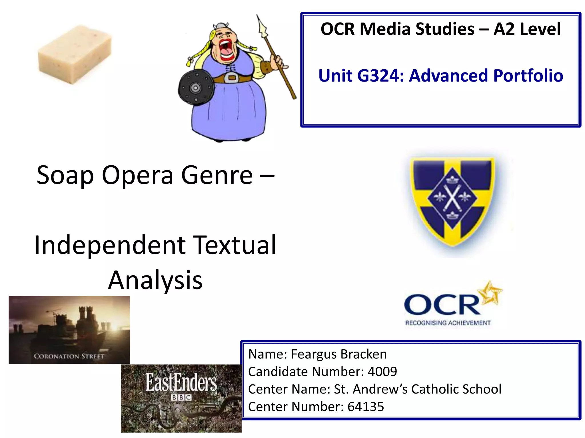 This document contains an analysis of two soap opera trailers: Coronation Street and Eastenders.