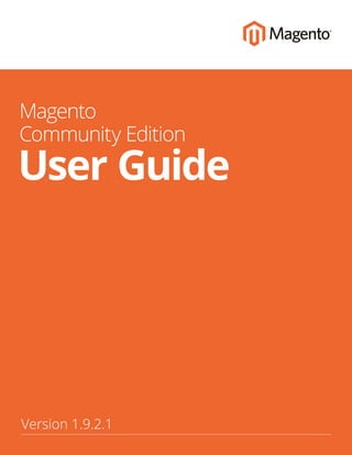 This document is a user guide for Magento Community Edition version 1.9.2.1. It contains 60 chapters covering Magento installation, configuration, products, sales, marketing and other store management topics. The guide provides instructions and best practices for setting up and using the Magento platform.