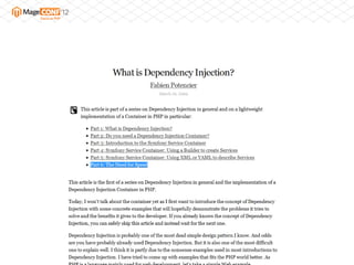 The document discusses dependency injection (DI) in Magento. It describes the traditional "pull" approach used in Magento where classes directly instantiate dependencies, leading to tightly coupled code. It then introduces the "push" approach using a DI container, where dependencies are injected into classes rather than pulled, reducing coupling. It provides examples of how Magento's object manager implements DI to improve testability and flexibility of classes.