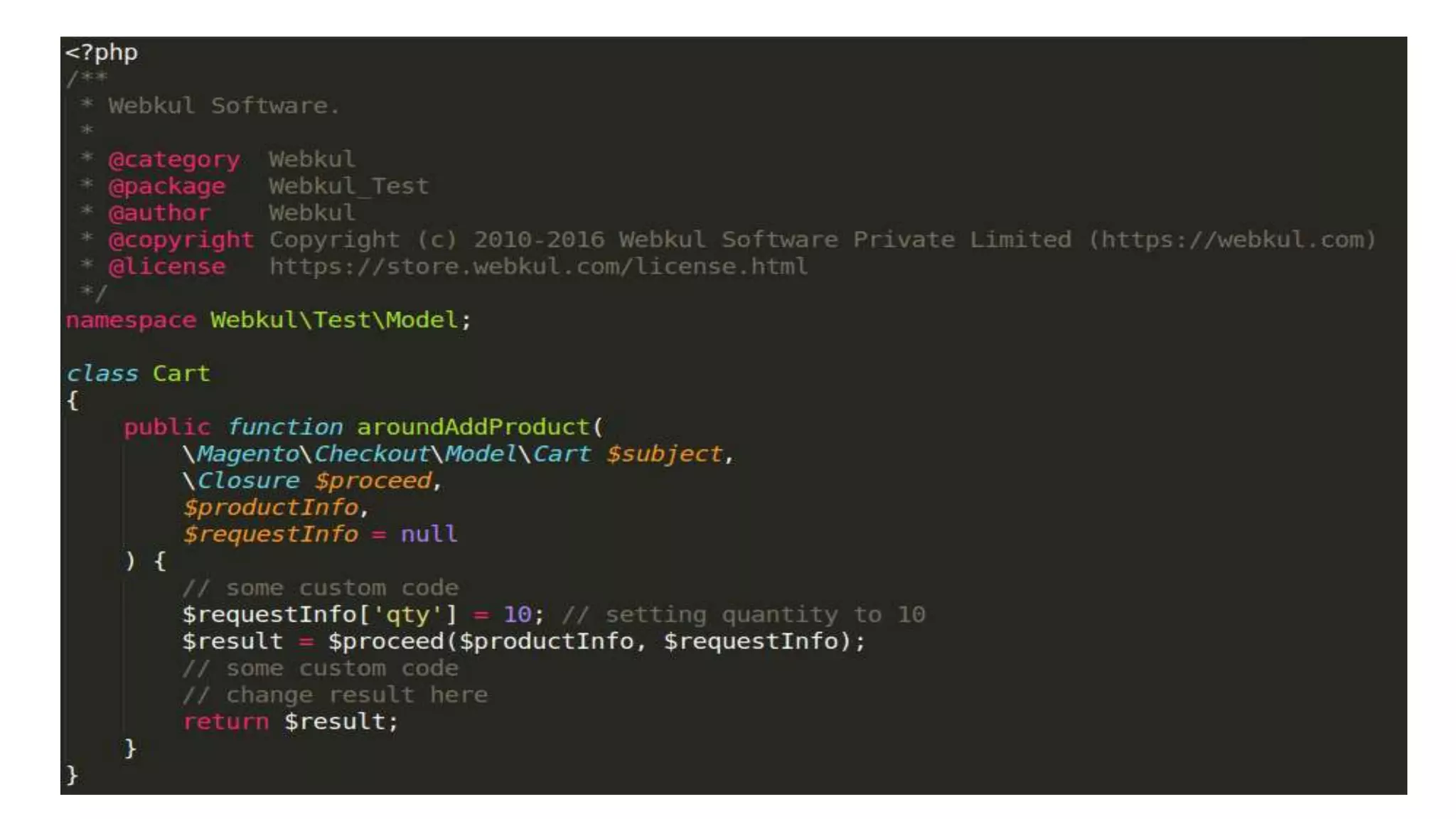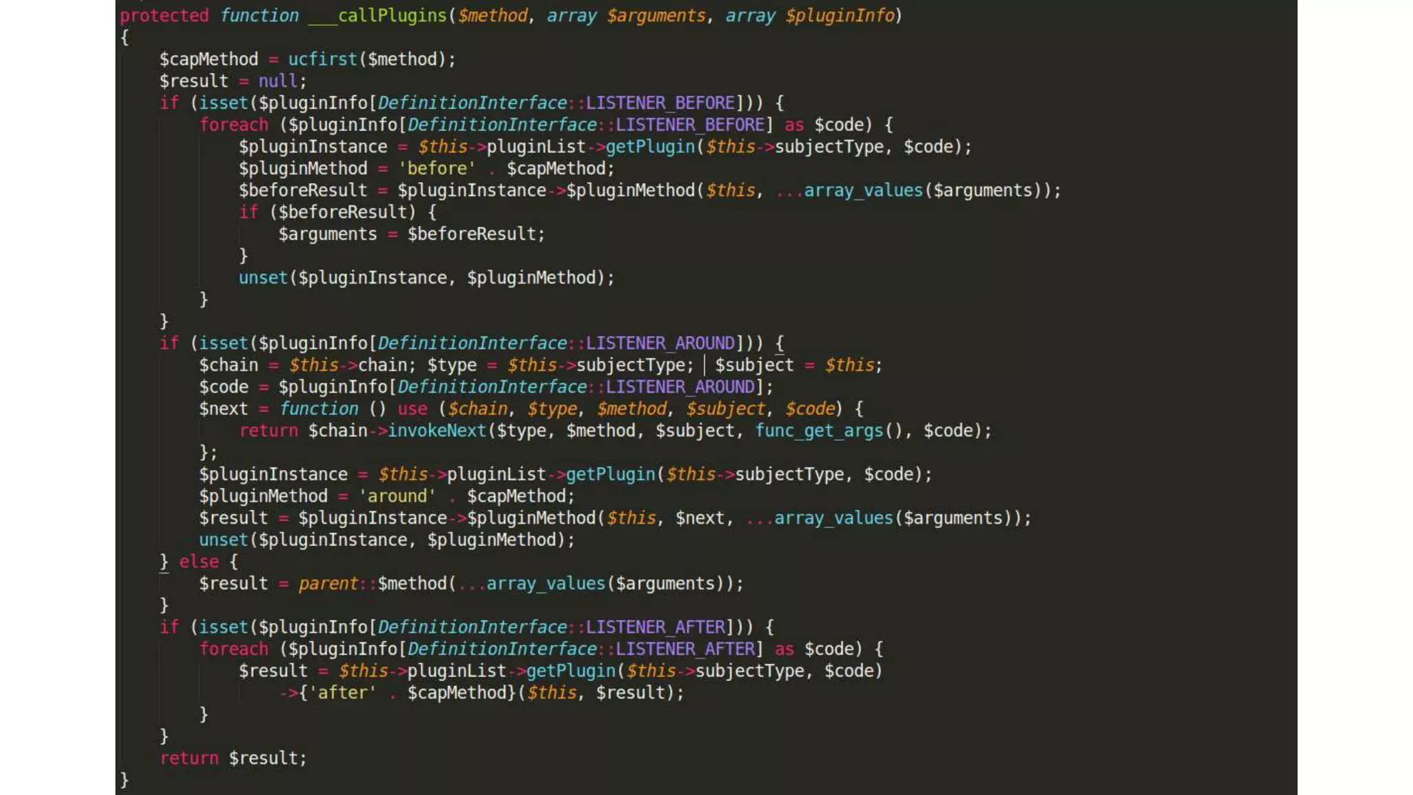 The document explains Magento 2 plugins, which allow modification of class behavior without altering the original class using a design pattern called interception. Plugins can be implemented using before, after, or around listeners, each serving different purposes in method execution and value handling. It also details how to declare plugins in the module's di.xml file and outlines limitations such as issues with final methods and non-public methods.