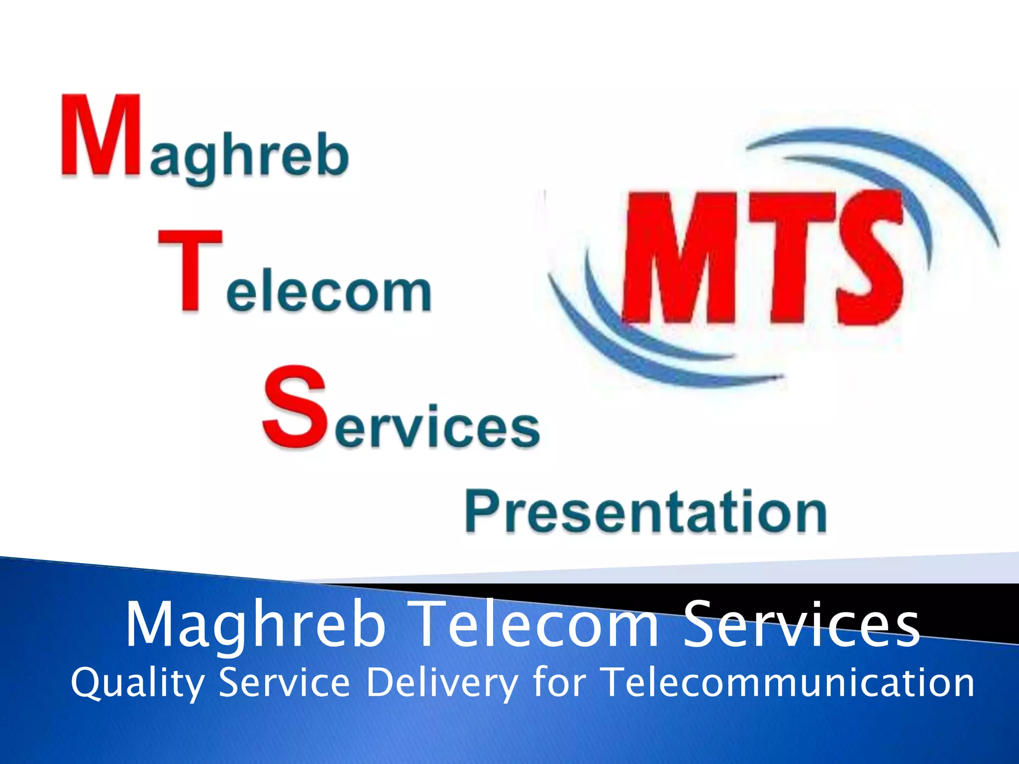 Maghreb Telecom Services provides quality telecommunication services including installation, optimization, and maintenance of network sites. Key positions include quality and audit engineers to ensure proper installation, engineer optimizers who perform drive tests to tune network clusters, site acquisition engineers who negotiate site locations, and site acceptance engineers who integrate new sites. Solar power engineers design renewable energy solutions for sites. Technician roles include installation, safety, environment, and rigging.