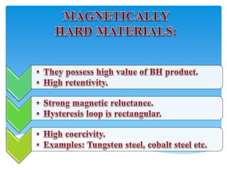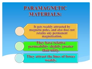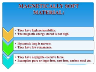 This document discusses magnetic circuits and compares them to electric circuits. It defines key terms like magnetic field intensity H, reluctance, flux φ, magnetomotive force (MMF), and permeability μ. It explains that in a magnetic circuit, flux is determined by MMF, reluctance depends on the material and geometry of the circuit, and reluctance opposes the flow of flux, similar to how resistance opposes current in an electric circuit. Flux is calculated as MMF divided by reluctance.