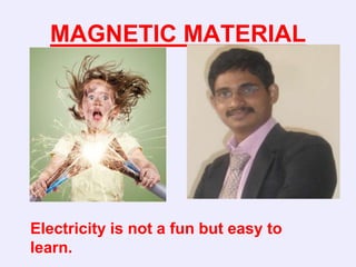 1. It discusses different types of magnetic behavior such as diamagnetism, paramagnetism, and ferromagnetism. It also discusses the properties of hard and soft magnetic materials.