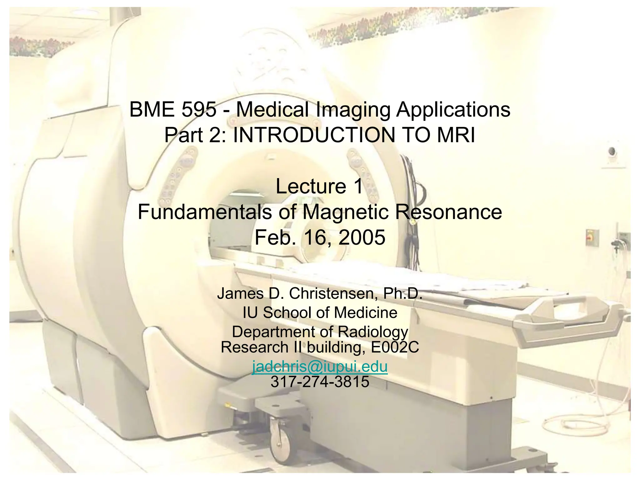 This document provides an introduction to magnetic resonance imaging (MRI) fundamentals. It discusses key topics like nuclear spin phenomenon, magnetic resonance techniques, MRI scanner components, relaxation processes, and pulse sequences. Important historical developments are highlighted, including Nobel Prizes awarded for contributions to MRI and related techniques. References for further reading on introductory MRI physics concepts are also provided.