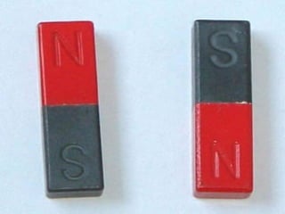 The document discusses the properties of magnetic and non-magnetic materials. It lists various objects and whether they are attracted to magnets. Magnets are made of iron, nickel, cobalt, or steel. Magnetic materials include cobalt knives, nickel coins, and iron nails. Non-magnetic materials include aluminum cans, copper coins, glass cups, wood, and plastic. The document also covers magnetic poles, how poles interact, magnetic fields, and electromagnets.