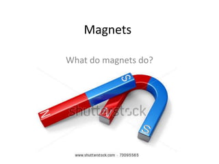 Magnets attract certain objects like iron that are magnetic materials, while other objects that are non-magnetic do not attract to magnets.
