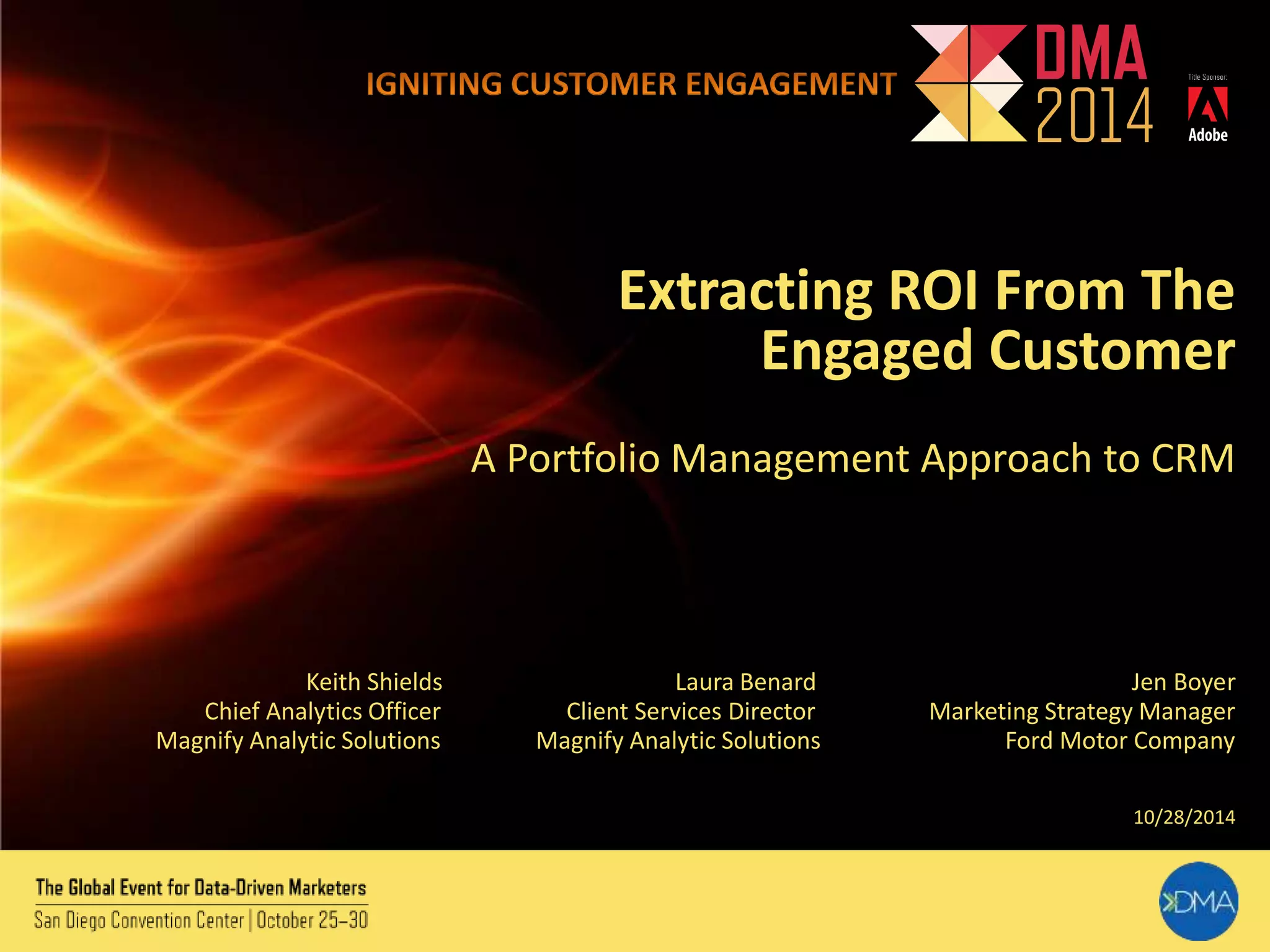 This document discusses applying a portfolio management approach to customer relationship management (CRM). It argues that CRM and consumer loan management are analytically similar, as both involve managing a portfolio of assets (customers or loans) to maximize cash flows. The document advocates adopting practices from consumer loan portfolio management, such as measuring customer lifetime value and using predictive analytics to manage the long-term health of the customer portfolio.