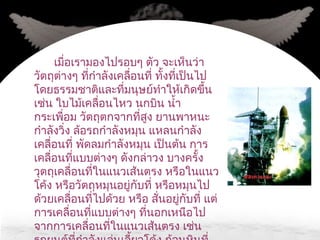 จาก ... รูป 4 ก . ปล่อยวัตถุลงในแนวดิ่ง วัตถุจะมีความเร็วต้นในแนวดิ่ง (u y ) = 0 รูป 4 ข . และ ค . ขว้างวัตถุออกไปในแนวราบด้วยอัตราเร็วต้นไม่เท่ากัน จะมีความเร็วต้นในแนวดิ่ง (u y ) = 0 เช่นกัน ขั้นตอนการคำนวณโจทย์ การเคลื่อนที่แบบโพรเจคไทล์