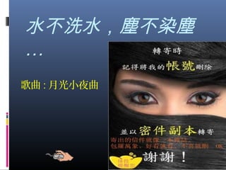 水不洗水,塵不染塵 … 歌曲 : 月光小夜曲