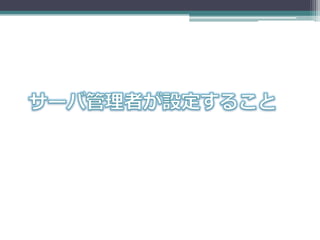 サーバの管理者が設定すること • 公開鍵証明書 ▫