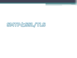 のみ利用されている。 • SMTPサーバ間の通信では利用されていない。 ▫ 25番ポート以外は利用しない。 ▫ 相手がSSL/TLSに対応しているかわからないから 違うポート番号465なんて使えない。 ▫ 25番ポートで通信できるSTARTTLSを使え ということで465番ポートは削除されたのではない かと推測