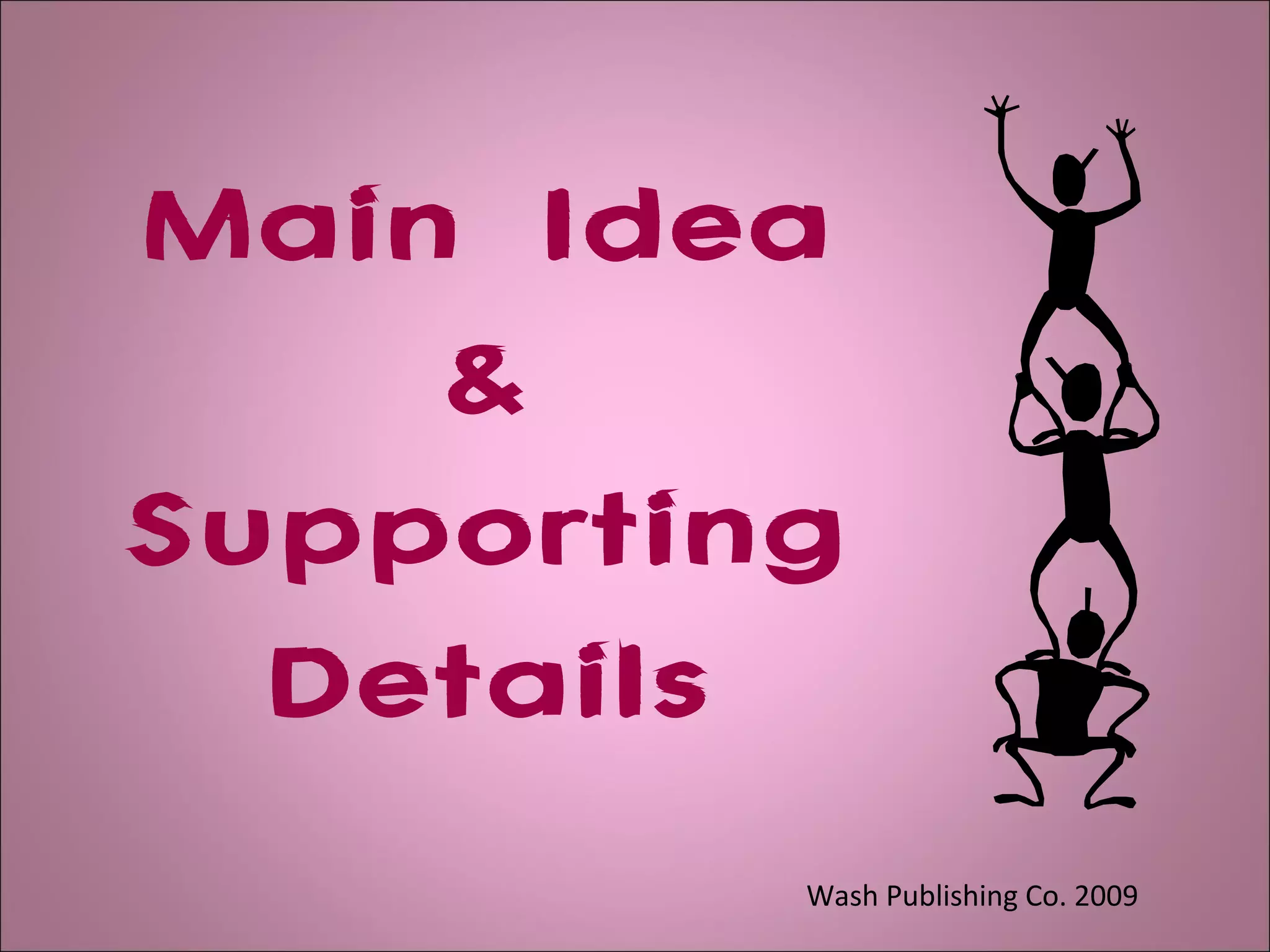 The document provides information on identifying the main idea in passages. It defines main idea as the most important overall point being communicated by the author. Supporting details in the text should all relate back to and provide evidence for the main idea. While some passages explicitly state the main idea in a topic sentence, others require the reader to infer the implied main idea based on the information given. Identifying the main idea is crucial for fully understanding what the passage is about.