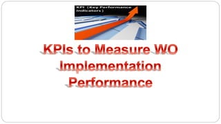 The document discusses maintenance policies and work order processes. It provides details on different types of maintenance policies including failure based, time based, condition based, and risk based approaches. It then describes the purpose and benefits of work orders, including recording downtime data, ensuring repairs are completed properly, and providing a source for planning and key performance indicators. Guidelines are provided on the information included in work orders like inventory details, requestor information, work descriptions, and actual completion details. The work order system and typical flow from generation to completion is outlined.