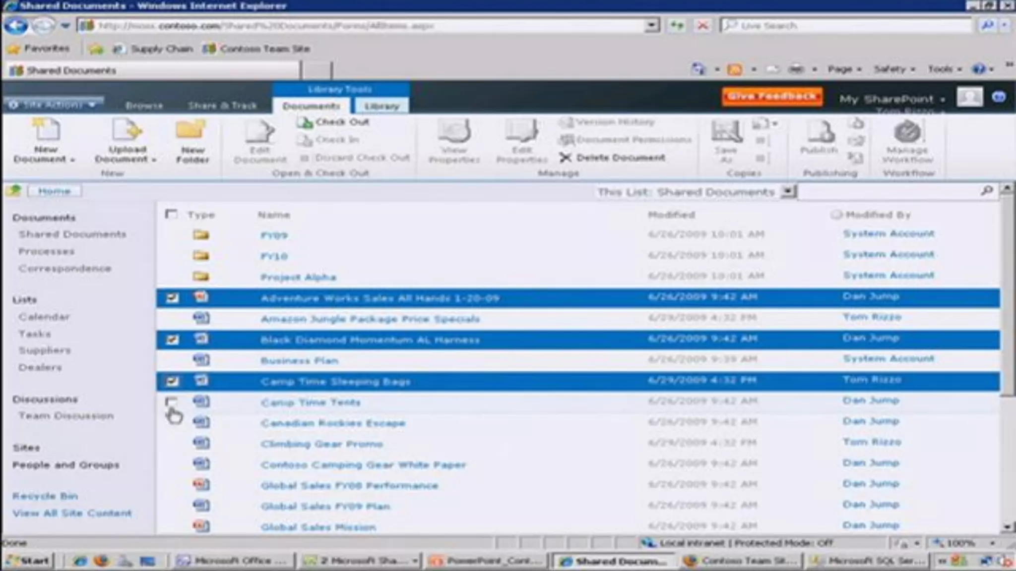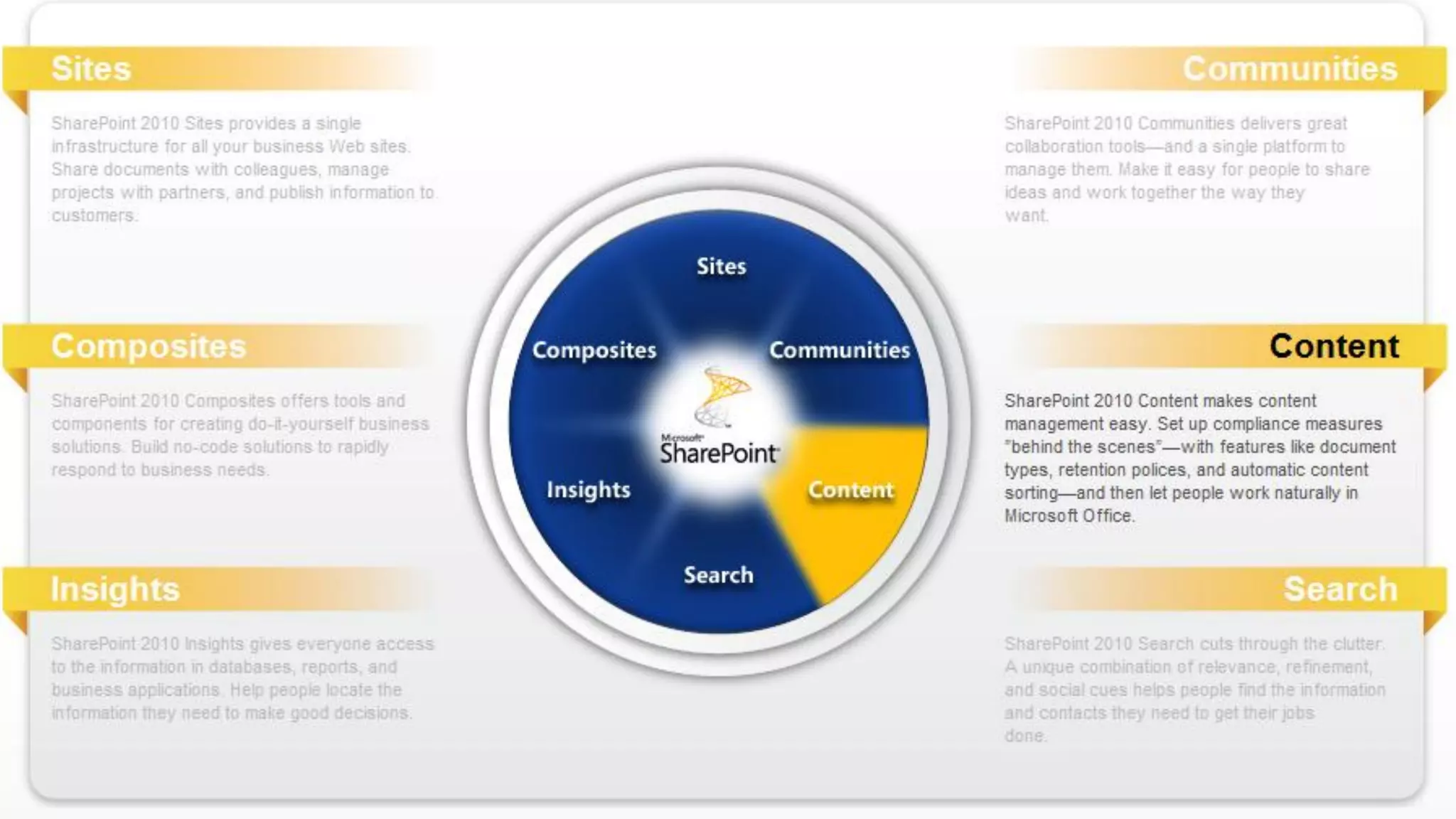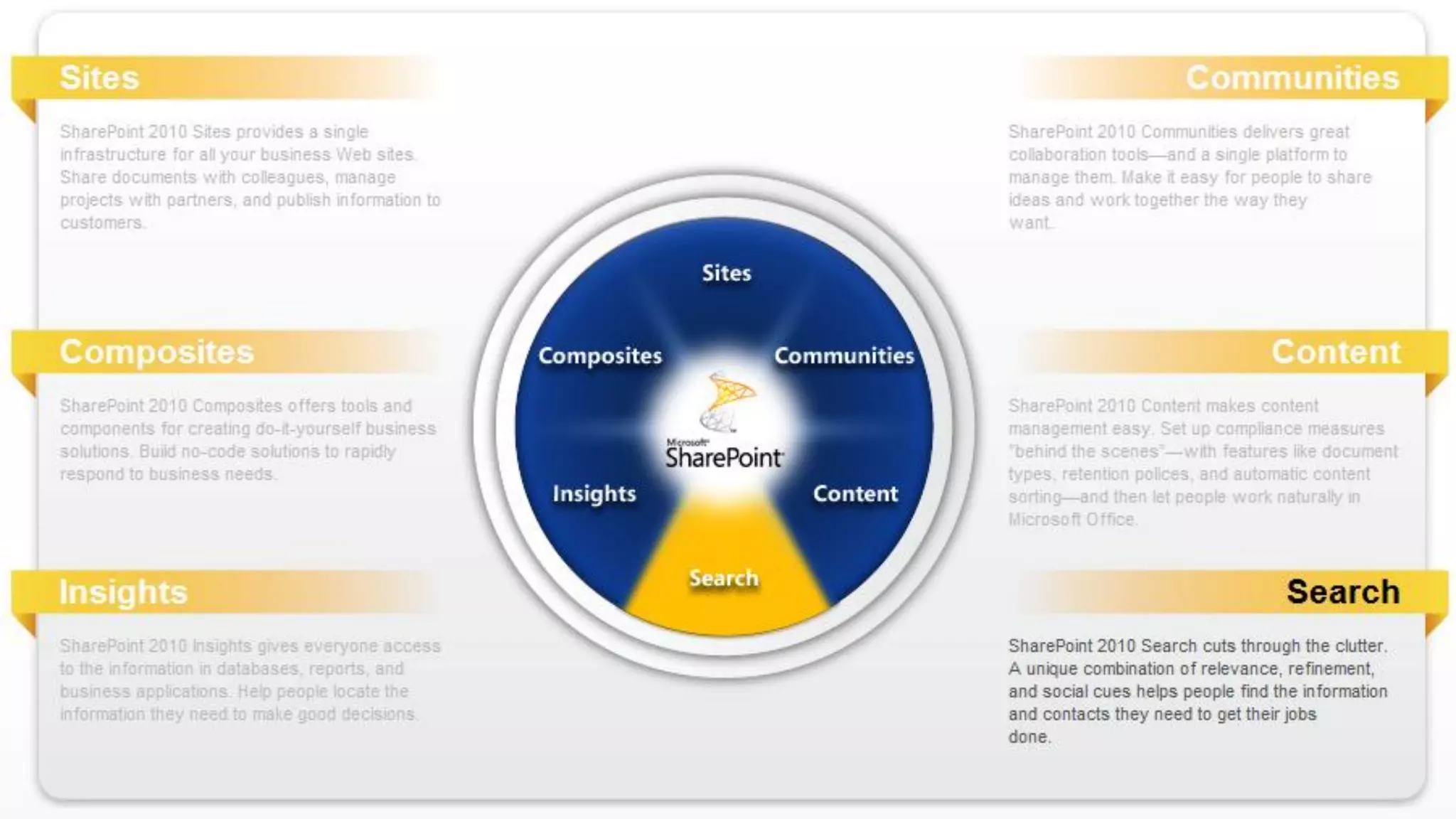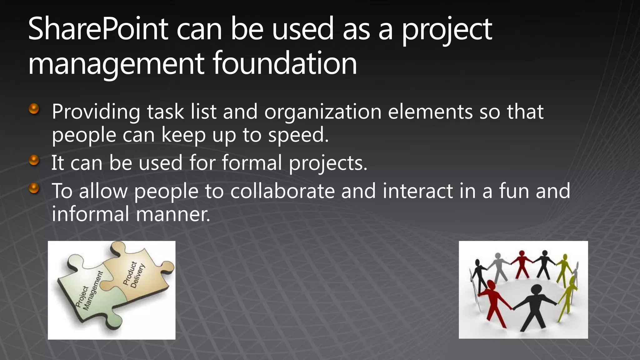 SharePoint 2010 is a web-based collaboration platform that allows users to share and organize documents, ideas, contacts and access them from anywhere. It provides shared workspaces to store and access documents and information for teams and projects. Users can synchronize documents offline for mobile access and resolve editing conflicts through a merge engine. Third party providers can deploy web parts, workflows and other features to extend SharePoint's capabilities. Code is isolated for security and scalability.