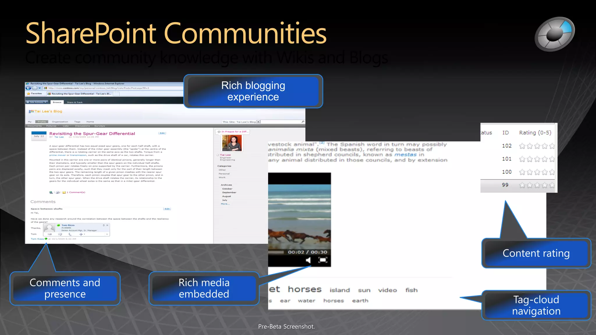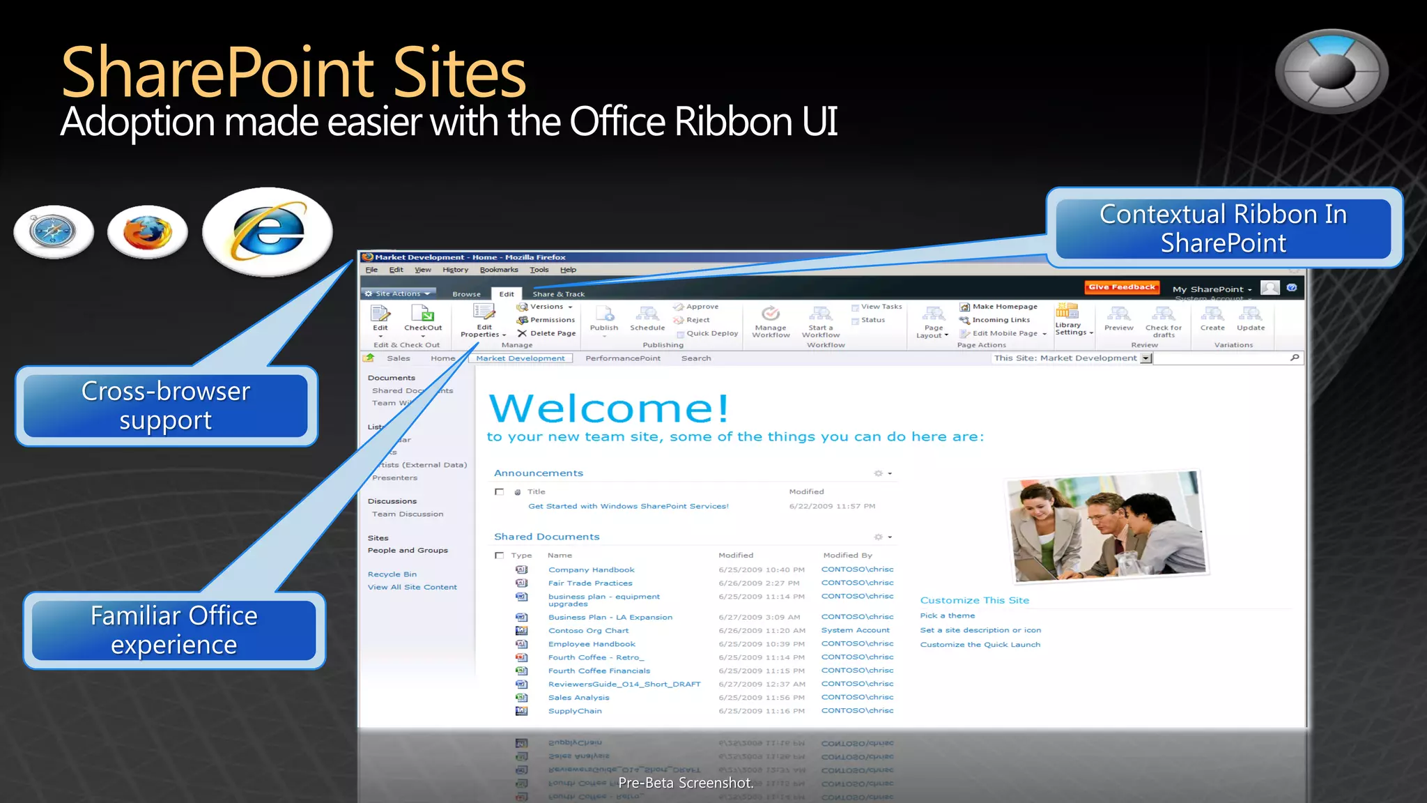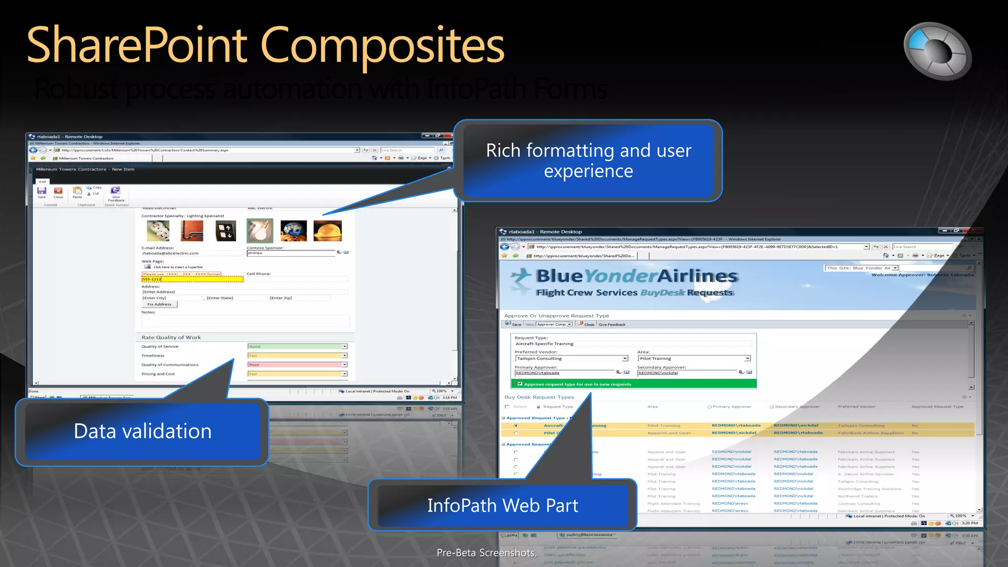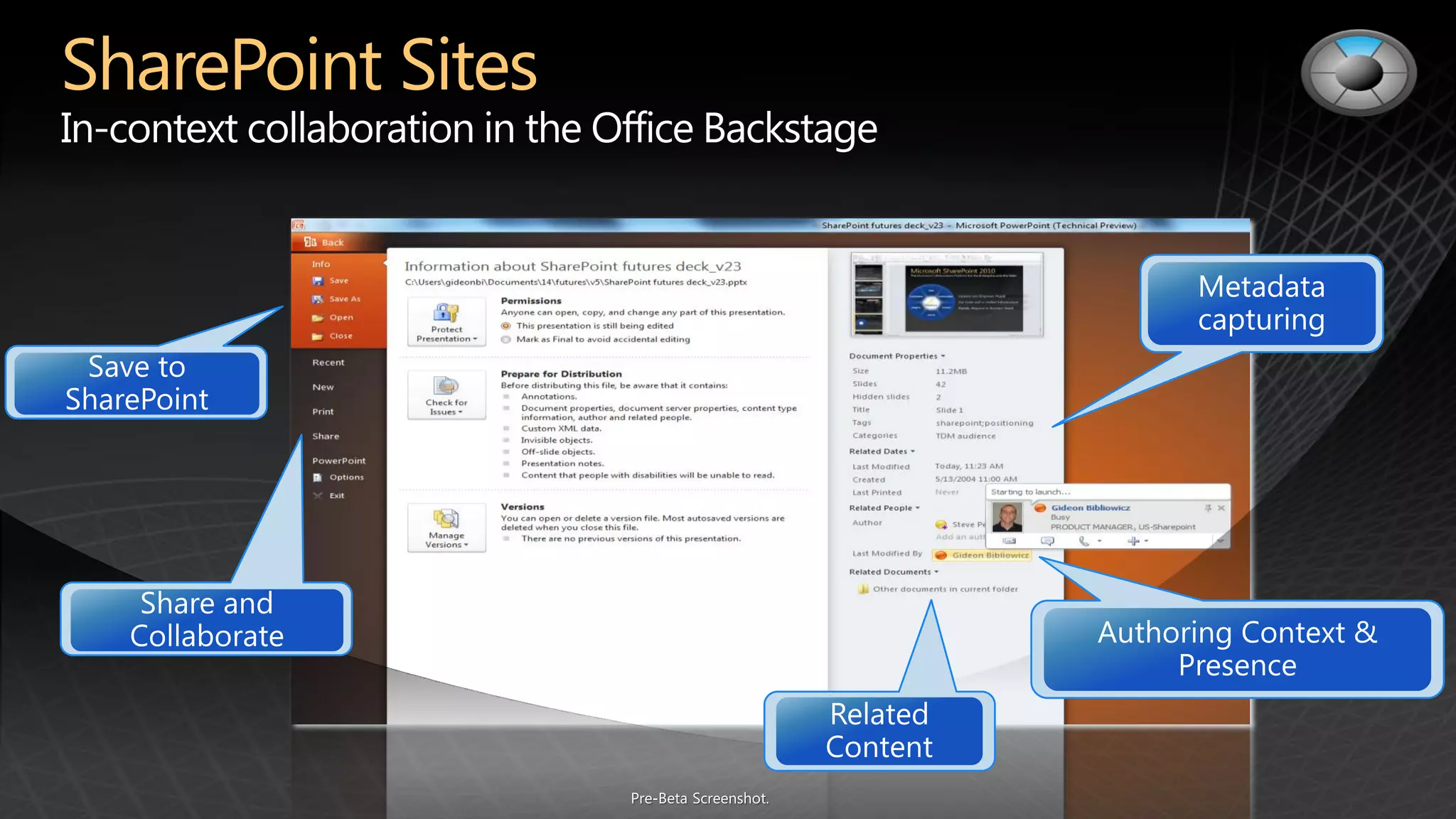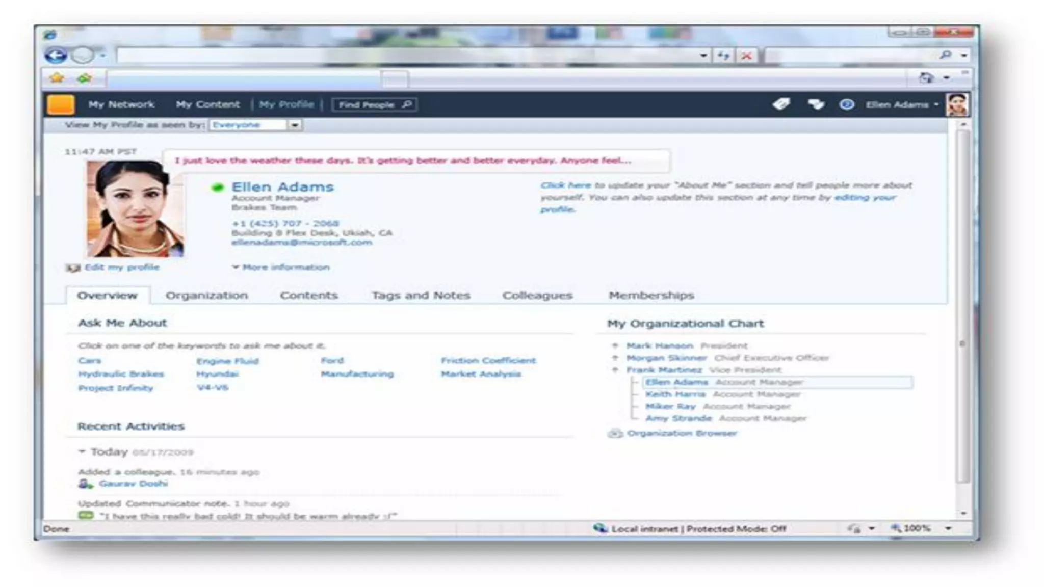 SharePoint 2010 is a web-based collaboration platform that allows users to share and organize documents, ideas, contacts and access them from anywhere. It provides shared workspaces to store and access documents and information for teams and projects. Users can synchronize documents offline for mobile access and resolve editing conflicts through a merge engine. Third party providers can deploy web parts, workflows and other features to extend SharePoint's capabilities. Code is isolated for security and scalability.