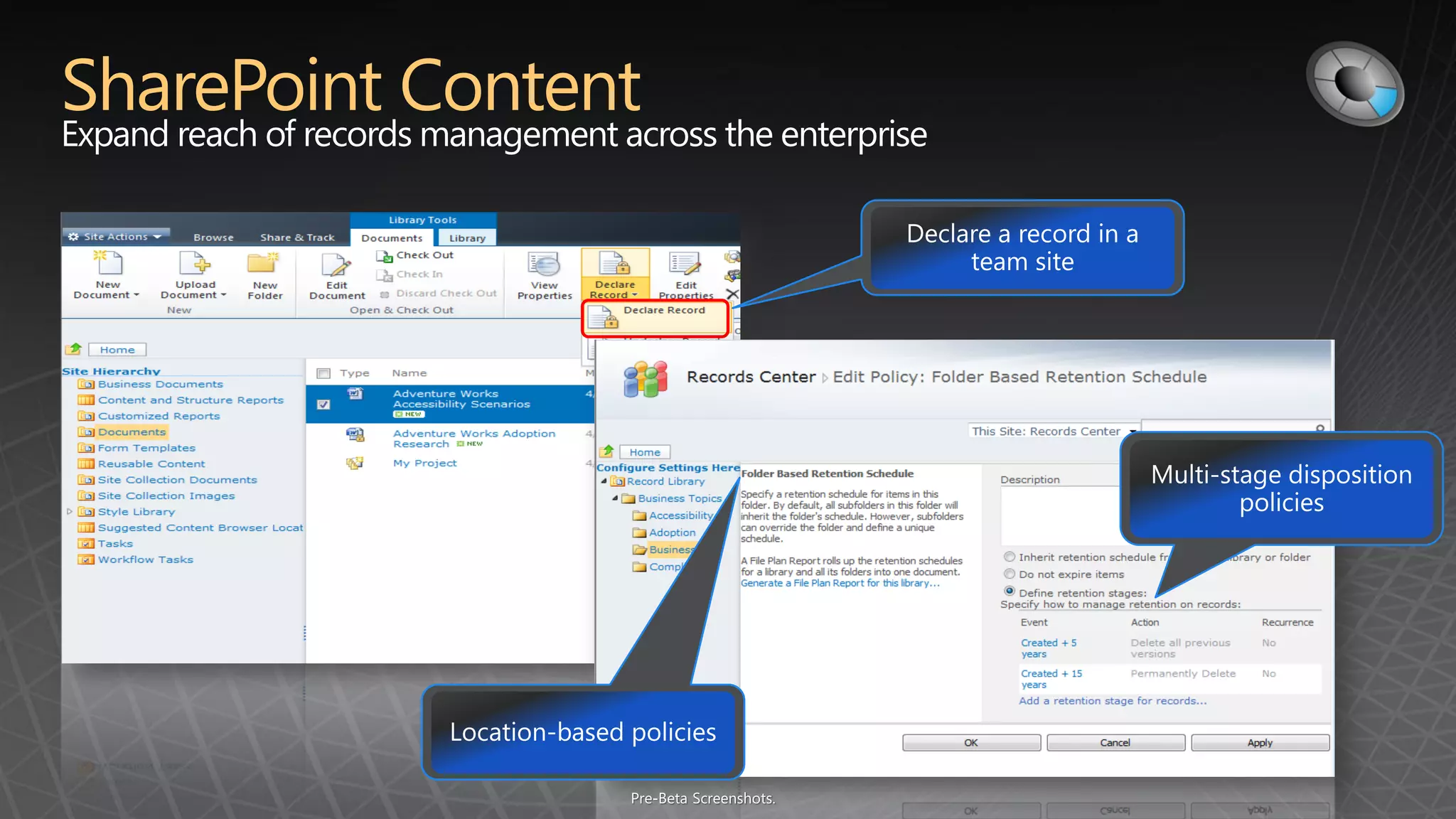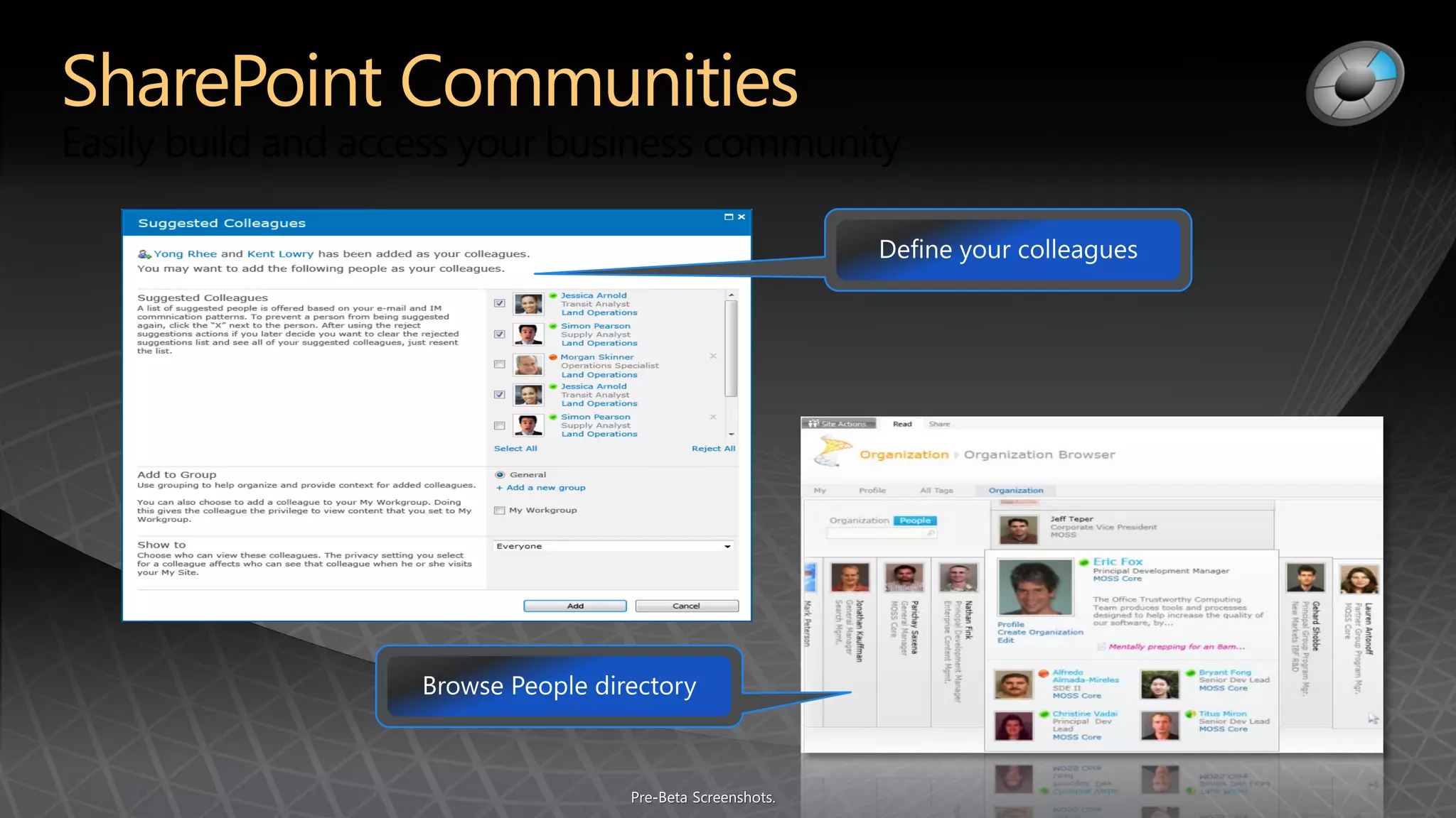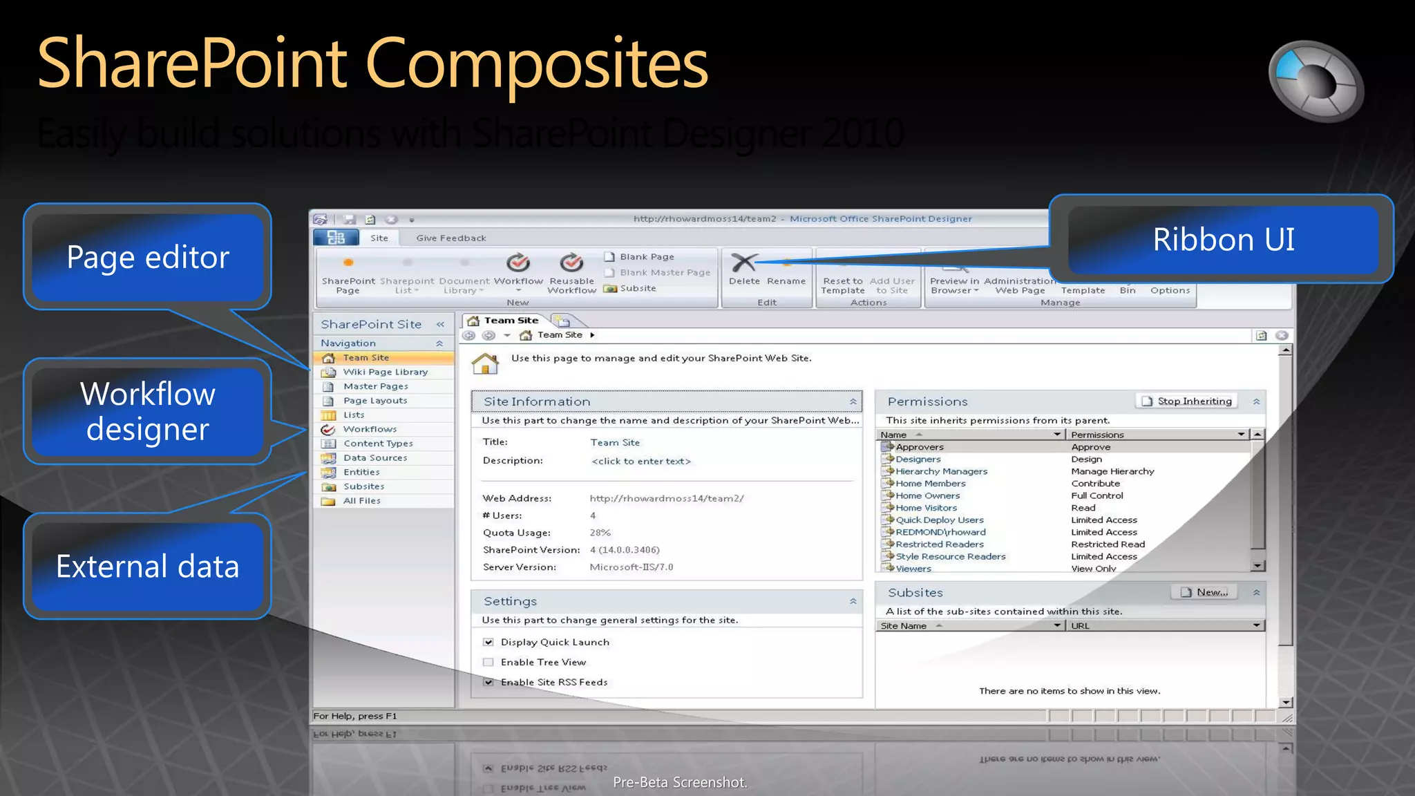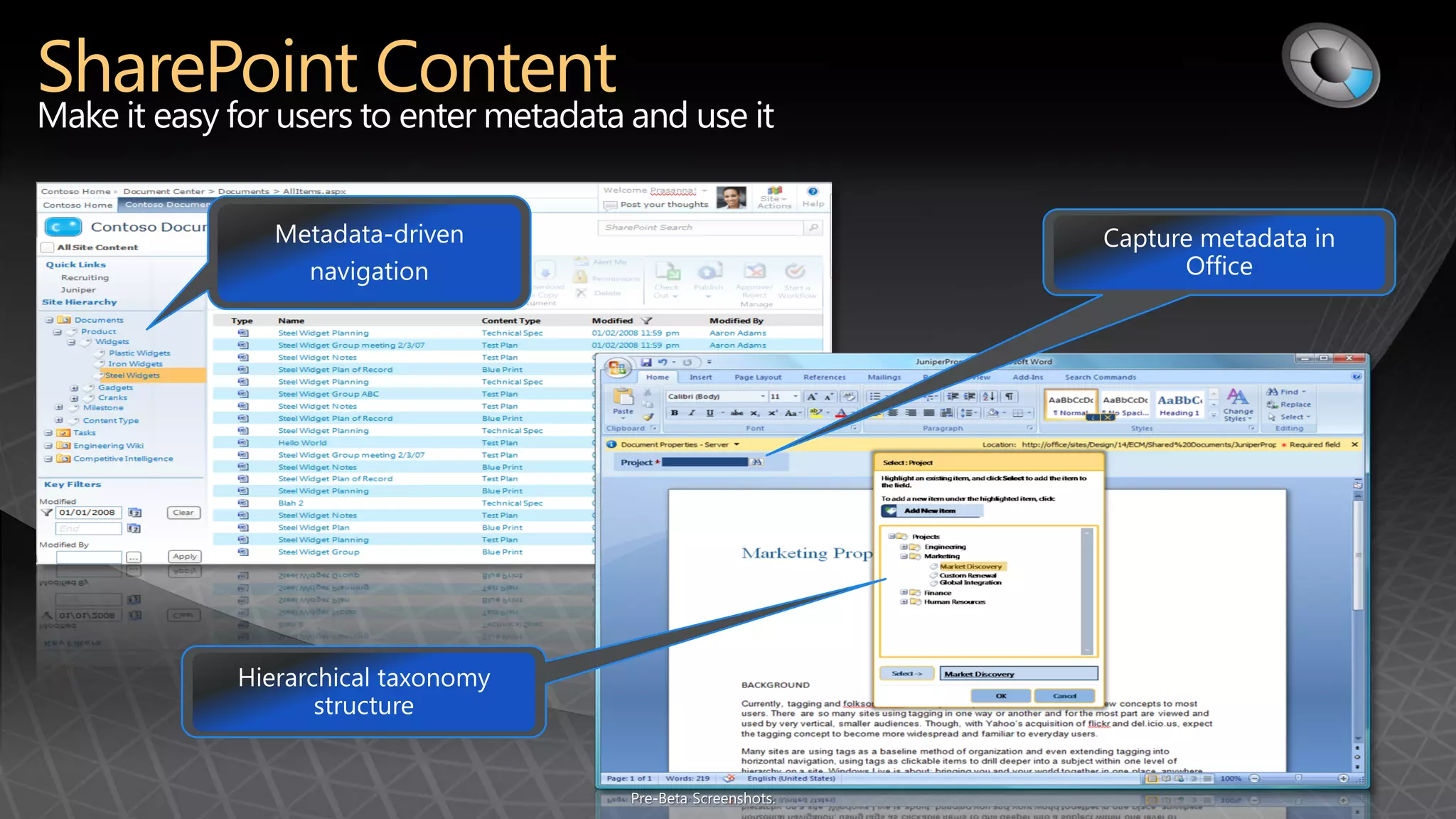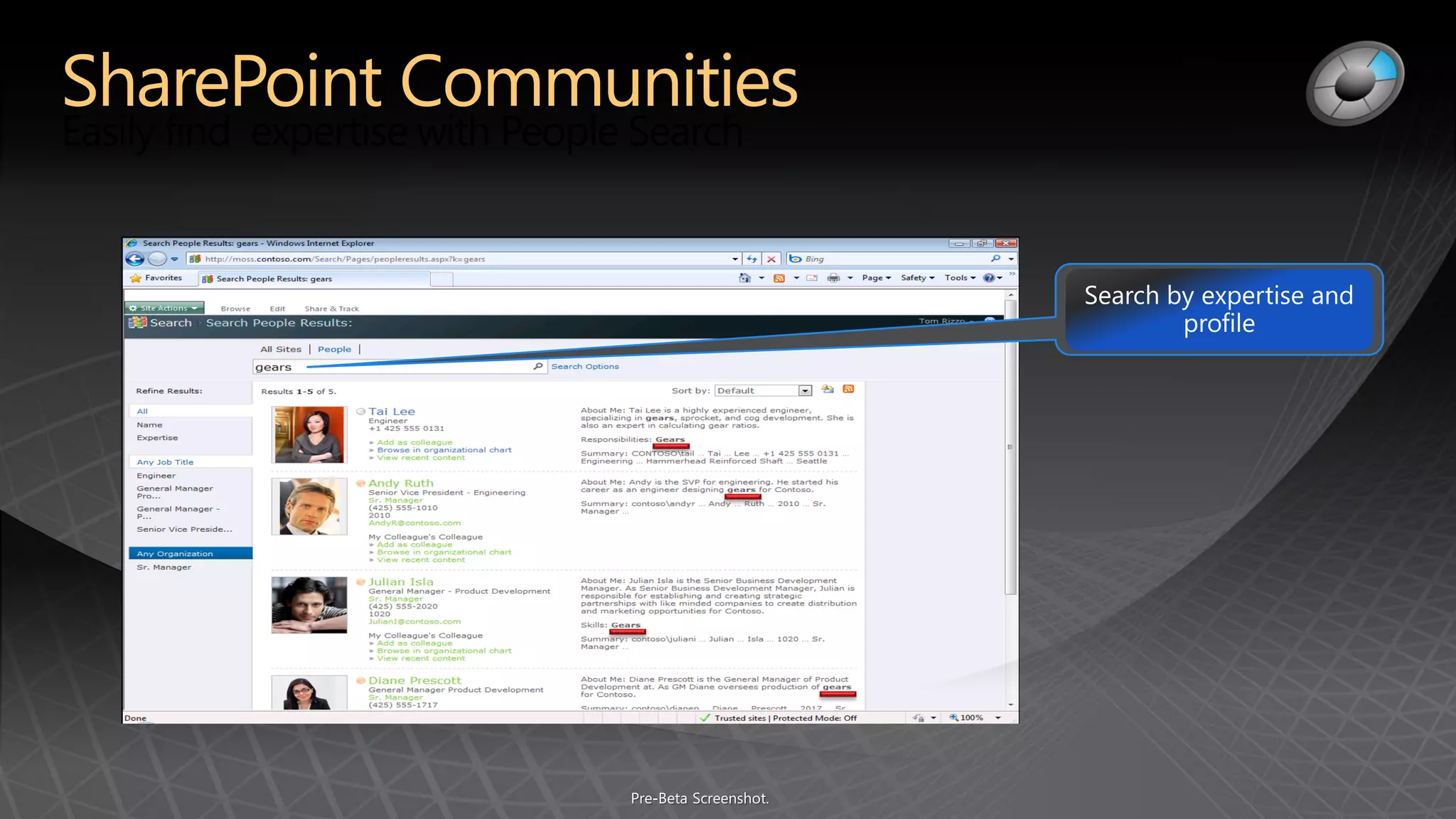 SharePoint 2010 is a web-based collaboration platform that allows users to share and organize documents, ideas, contacts and access them from anywhere. It provides shared workspaces to store and access documents and information for teams and projects. Users can synchronize documents offline for mobile access and resolve editing conflicts through a merge engine. Third party providers can deploy web parts, workflows and other features to extend SharePoint's capabilities. Code is isolated for security and scalability.