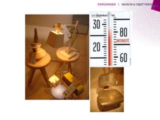 #9 The Masion Objet Observatory offers a 360* vision of the newest trends. This is a group composed of the top trend researchers and together, they work to understand, analyze and decode the emerging trends. Styles, materials, forms, colors and decoration are screened and translated in the “Observatory”.The theme of this year’s trend show was Intensite (Intensity). It took on three personalities, each of which was showcased in its own exhibit: Unplugged, Haute Tension and Hypnotic. Here are a few pictures and videos to give you the flavor of each theme.