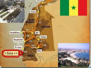 Dakar -je hlavní město Senegalu na pobřeží Atlantského oceánu -jeho rozloha je 82,38k km ² -je sídlem Senegalského národního shromáždění a Senegalského prezidentského paláce. -v samotném městě žije 1 000 000 obyvatel - to je stejně jako v Praze a o 915 000 více než v Lounech