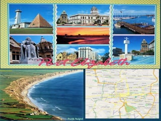 Port Elizabeth Nachází se na jihu Afriky v Jihoafirick é republi ce v provincii Východní Kapsko. Je to přístavní město, které lež í u Indického oceánu. Počet obyvatel je 968 000, v e městě je mezinárodni letiště. Roku 1885 zde byla založena hadí zologická zahrada. Port Elizabeth je významné průmyslové centrum JAR, je zde rozvinutý automobilový průmysl