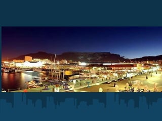 Kapské Město Hlavní město provincie Western Cape Zároveň legislativní hlavní město. - Je označováno jako jedno z nejkrásnějších měst světa stalo se oblíbeným turistickým cílem. - je druhé největší město Jihoafrické Republiky - bylo první evropskou osadou na území dnešní Jihoafrické republiky, proto je jihoafričany často označováno jako „ Mother City"- Mateřské město. - Téměř polovina obyvatel se nazývá „Coloured“ – míšenci evropských a asijských přistěhovalců