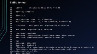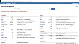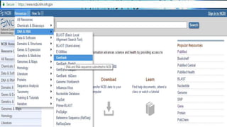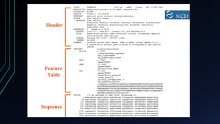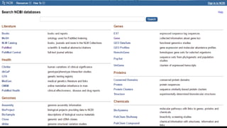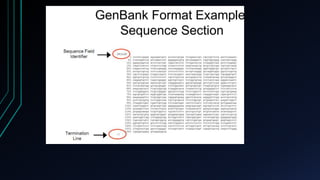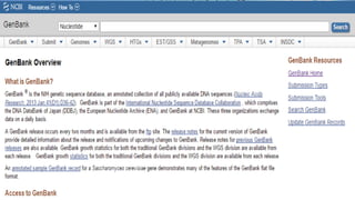 GenBank, EMBL, and DDBJ are primary nucleotide sequence databases that collaborate to store publicly available DNA sequences. NCBI's GenBank is one of the largest primary sequence databases, containing over 240,000 organisms' sequences submitted from laboratories. PubMed and Entrez are literature and biomedical databases maintained by NCBI that allow users to search biomedical research articles and integrate related data from multiple sources. SRS is a sequence retrieval system developed by EBI that integrates over 250 molecular biology databases and allows complex queries across data sources.