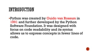 Python was createdby Guido van Rossum in