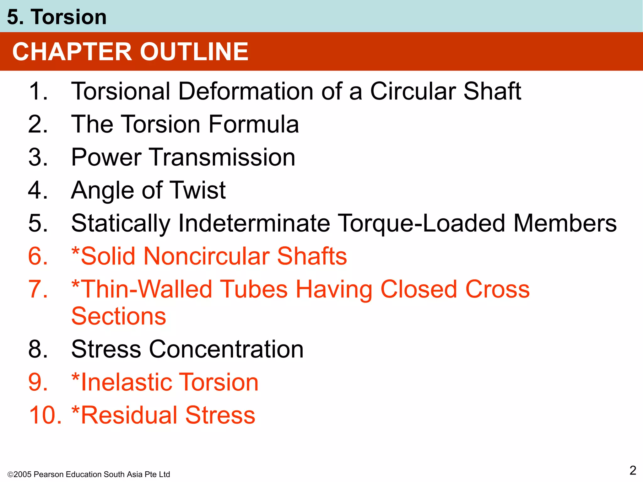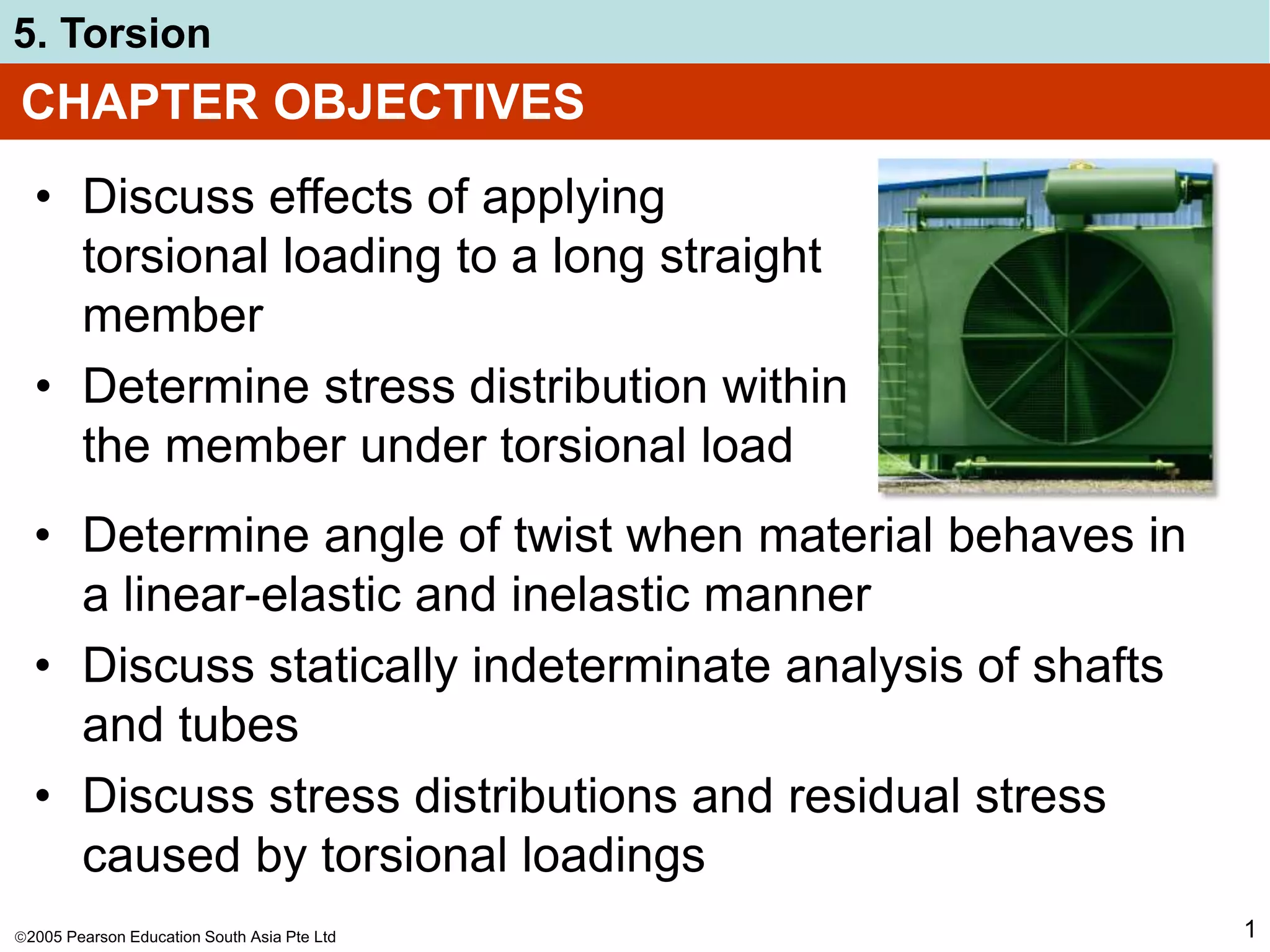 The document discusses torsion and shafts. It covers torsional deformation of circular shafts, the torsion formula for determining shear stress, power transmission through shafts, and the angle of twist. Examples are provided to demonstrate how to use the torsion formula to calculate shear stress and size shafts based on power requirements. Procedures are outlined for analyzing statically indeterminate shafts under torsional loading.