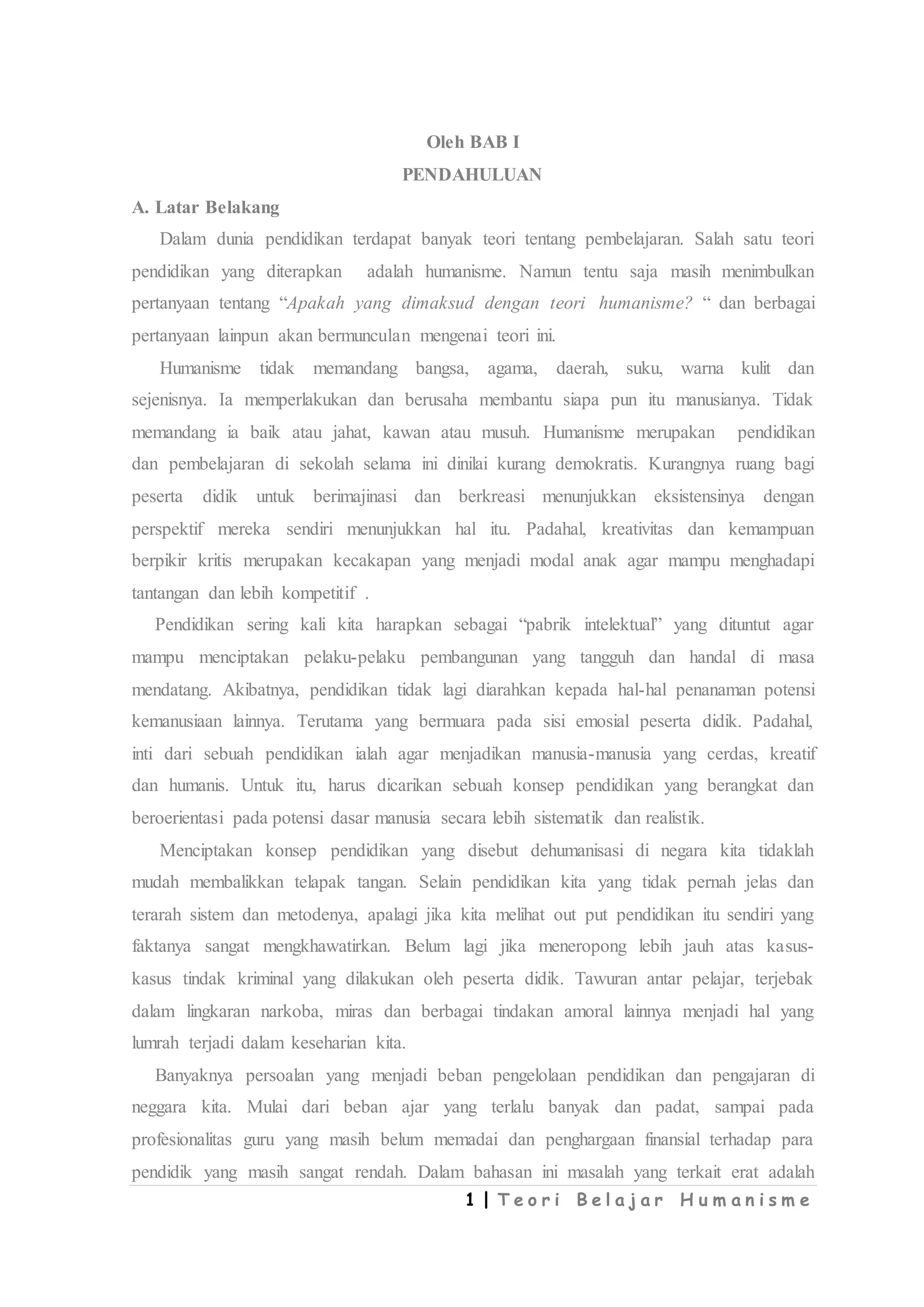 Teori belajar humanisme menekankan pada pembangunan potensi manusia secara utuh. Tokoh-tokohnya seperti Maslow dan Rogers menyatakan bahwa tujuan pembelajaran adalah aktualisasi diri siswa dengan memberikan arti bagi kehidupan mereka. Guru dituntut untuk menciptakan kondisi yang mendukung melalui empati dan penghargaan.
