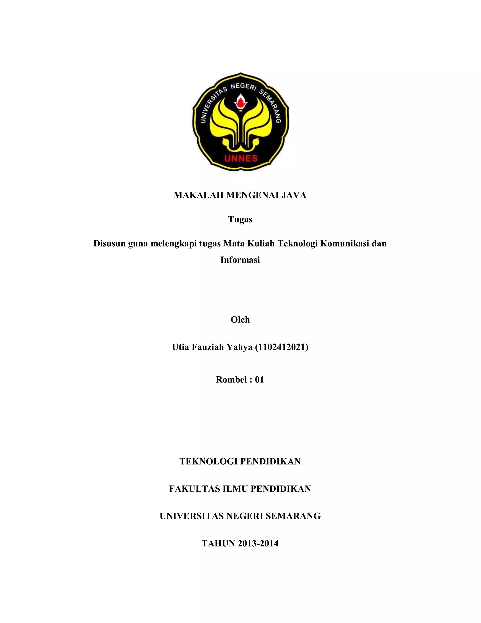 Makalah ini membahas bahasa pemrograman Java, yang merupakan bahasa tingkat tinggi berorientasi objek dengan fungsionalitas melalui kelas dan application programming interface (API). Java memiliki karakteristik seperti platform independence, garbage collection, dan dukungan untuk multithreading, serta dirancang untuk kemudahan penggunaan dan keamanan. Selain itu, beragam komponen grafis dapat dibuat menggunakan pustaka AWT dan Swing dalam Java.