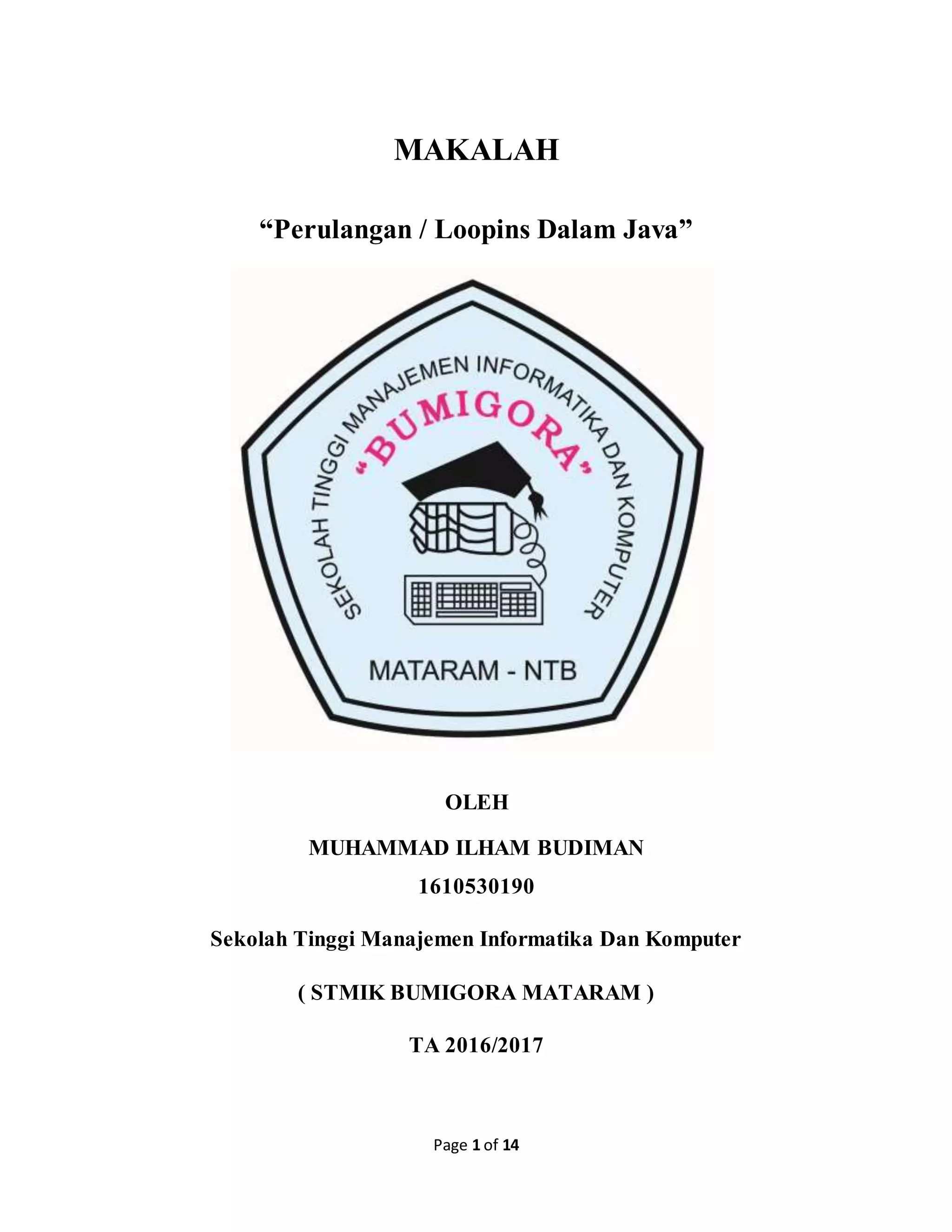 Makalah ini membahas tentang perulangan/looping dalam bahasa pemrograman Java. Secara garis besar membahas pengertian Java, sejarah Java, dan jenis-jenis perulangan yang ada dalam Java seperti for, while, dan do while beserta contoh kode programnya.