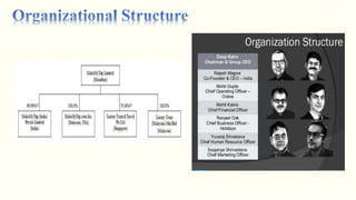 The document is a case study on Deep Kalra, the founder and CEO of MakeMyTrip, detailing his entrepreneurial journey and the founding of the online travel booking platform in 2000. It highlights key milestones, including the company's launch, rapid growth, and its focus on customer satisfaction and technology integration in the travel sector. Additionally, it addresses challenges faced by MakeMyTrip, including market competition and the impact of recent events on travel bookings.