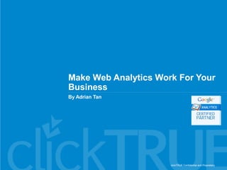 The document discusses how to use web analytics to improve a business's website and marketing efforts. It provides tips on how to address common issues clients face with analytics tools, including overload of metrics, inconsistency of data, and not understanding what goals the site should achieve. The document then addresses several questions about measuring success, including focusing on the most important metrics, evaluating content and writers, low-budget traffic strategies, understanding user behavior, when to start selling, and monitoring social media benefits.