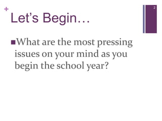 This document provides guidance and inspiration for teachers to make each day and their teaching a "masterpiece." It encourages teachers to visualize their teaching as a work of art and focus on making a positive impact each day. Teachers are reminded that each present moment is a gift and that focusing on continuous growth and improvement will allow them to help students reach their potential. The document celebrates the creative power teachers possess to design rich and meaningful learning experiences for their students.