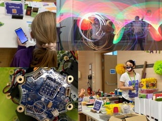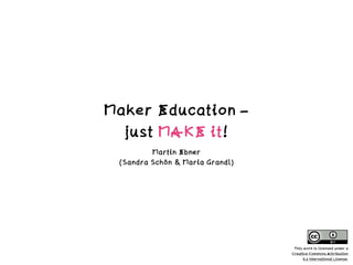 This document discusses the history and principles of maker education. It outlines how maker education began in the late 1990s and early 2000s with the development of makerspaces, Fab Labs, and the first Maker Faire. The key principles of maker education are described as learning through construction, allowing creative failure, using both digital and physical tools, self-organized and peer learning, and working with adults on the same level. Examples are given of MakerDays events for children held in Austria that involve various making stations and have led to student-created digital products and improvements in self-efficacy and creativity. The document advocates for bringing maker education approaches into primary school teacher training and other adult education programs.