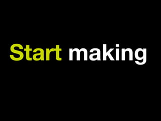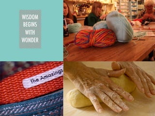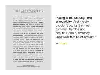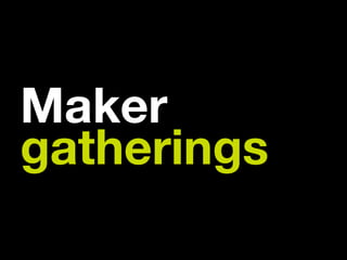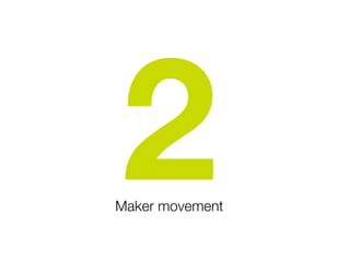 The document discusses the maker movement and the importance of creativity, emphasizing hands-on work, innovation, and community engagement. It highlights various initiatives and platforms that promote making, repairing, and upcycling, stressing the idea that fixing and crafting are essential forms of creativity. The author encourages embracing this mindset and starting projects in the present rather than delaying action.
