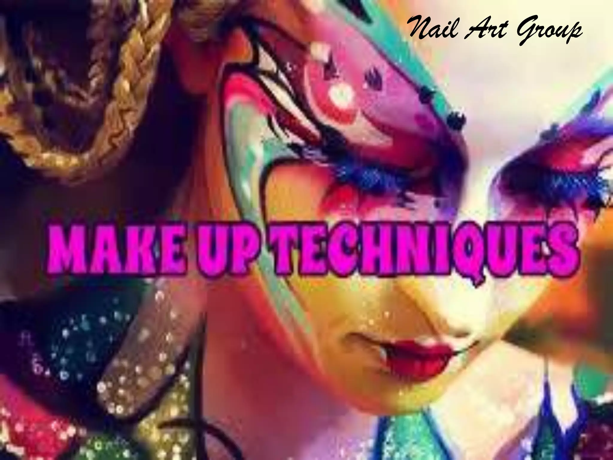 The document provides a history of makeup, discussing its origins in ancient Egypt and its reemergence in Europe after the Crusades. It then summarizes trends in the early 20th century including the introduction of new styles each decade, as well as counterculture movements like the hippie, punk, and glam styles of the 1960s and 1970s that aimed to depart from traditional makeup norms. The document also defines different types and purposes of makeup and provides tips on identifying face shapes and how to apply makeup to best suit each shape.