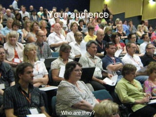 To make an effective presentation, you must understand your audience and what is important to them. Keep the presentation concise by not including too much information and use visuals like images instead of just words to engage the audience. Involve the audience in the presentation through interaction to hold their attention and come across as natural through your body language.