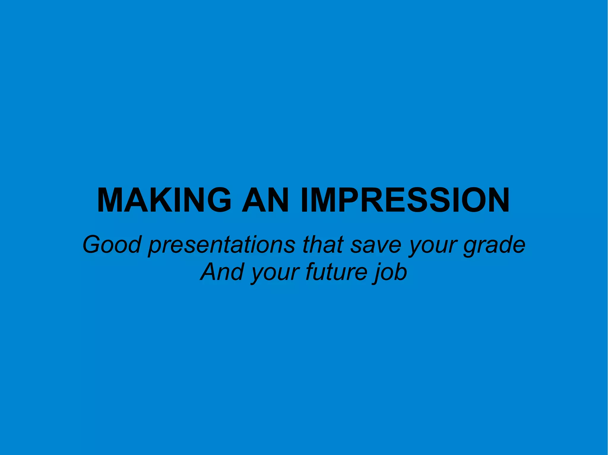 The document provides tips for creating effective presentations that engage audiences. It recommends using large fonts, repeating key terms, colorful visuals like pictures, and speaking loudly to capture attention in today's visual world. Presenters should focus on concise, memorable content and prepare for potential technical issues. Students are encouraged to write and present on topics they genuinely care about like hobbies, even if they think others may view them as "stupid", as passion makes for engaging presentations.