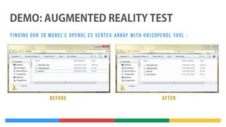 - Common methods for implementing AR including marker-based AR, image target tracking, and location-based applications utilizing GPS, compass, and other sensors.