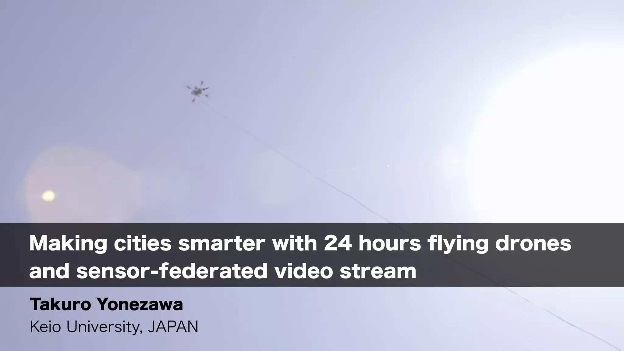 This document discusses using drones and sensors to make cities smarter. It proposes connecting video cameras and sensors on drones to stream live sensor and video data. This would allow drones to monitor cities around the clock while transmitting important information. It also addresses challenges like limited flight times due to battery life that can be overcome by new technologies like wired drones that could charge while flying and transmit data over long cables. The overall goal is to develop multi-tier smart city solutions using drones, satellites, vehicles and more to collect and share sensor data across space, air, and ground.