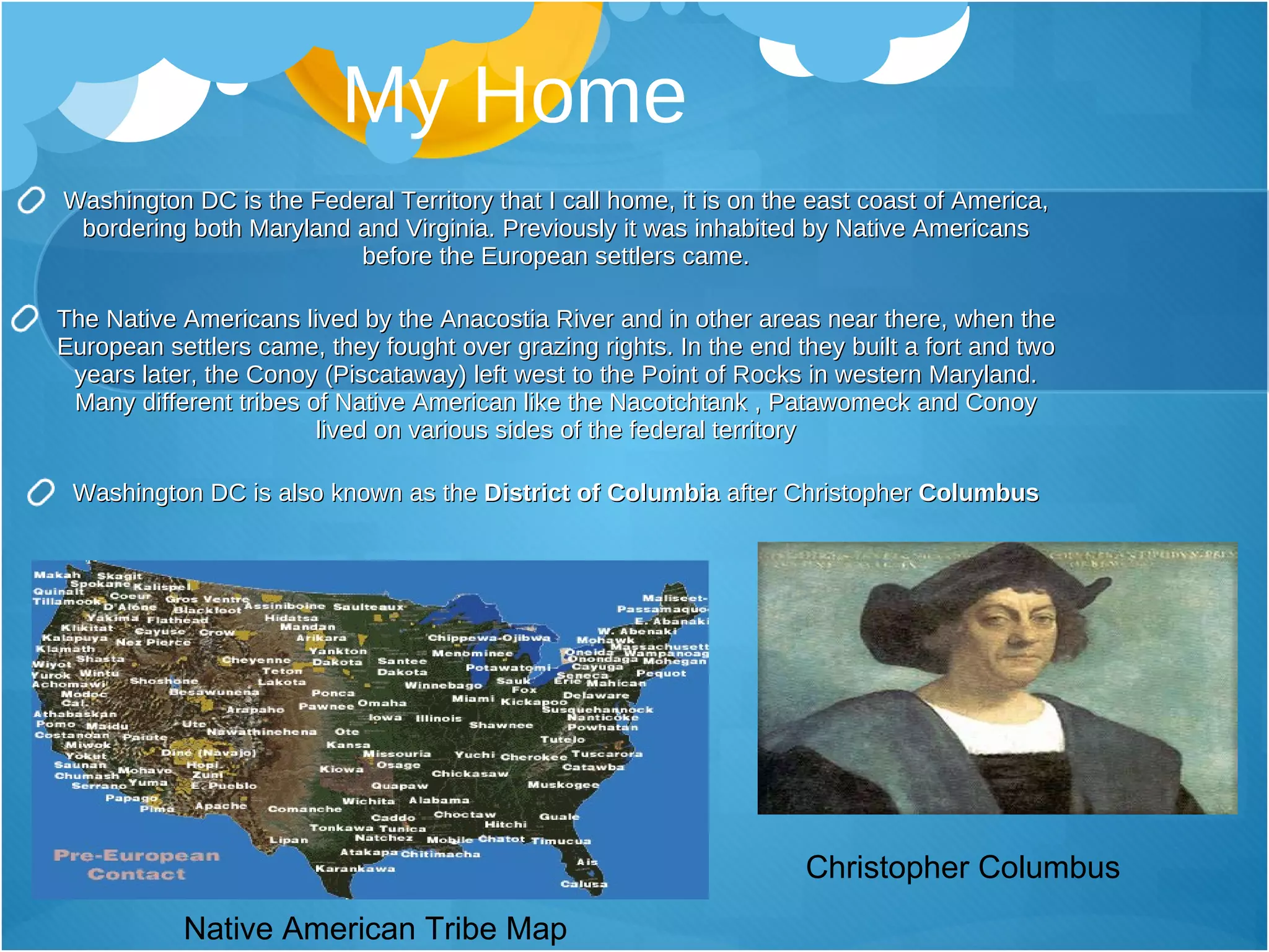 The document provides information about Washington D.C., including its history, geography, demographics, and symbols. It notes that Washington D.C. was originally inhabited by Native Americans and later became the capital of the United States. The document outlines the city's location along the Potomac River, its layout designed by Pierre L'Enfant, and its population statistics.