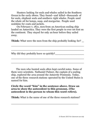 3) In the early 1800s, sealers and whalers who were hunting for seals and whales in the Southern Ocean began finding and killing thousands of fur seals, elephant seals, and southern right whales for their oil, skins, and meat.