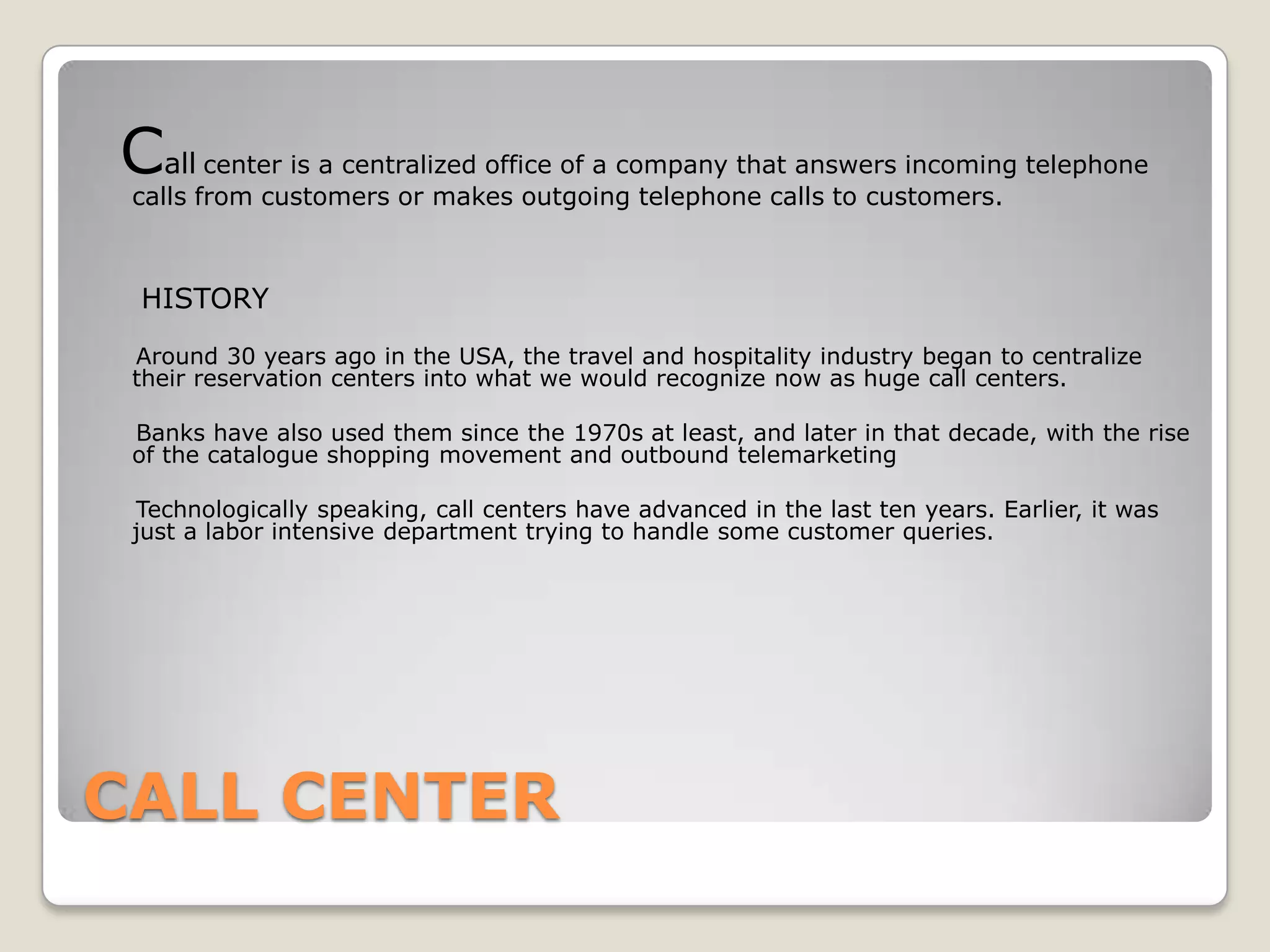 This document discusses infrastructure decisions for an outbound call center. It begins with a brief history of call centers and an overview of their evolution and technology advances. It then describes the two main types of call centers - inbound and outbound. For outbound call centers, it outlines the options of manual dialing versus predictive dialing technology. The rest of the document provides details on the components, types, advantages and cost considerations of predictive dialing and hosted solutions. It concludes by discussing Arbayes Call Center's decision to test a hosted predictive dialing solution and presents sample reports comparing the performance under the new versus old infrastructures.