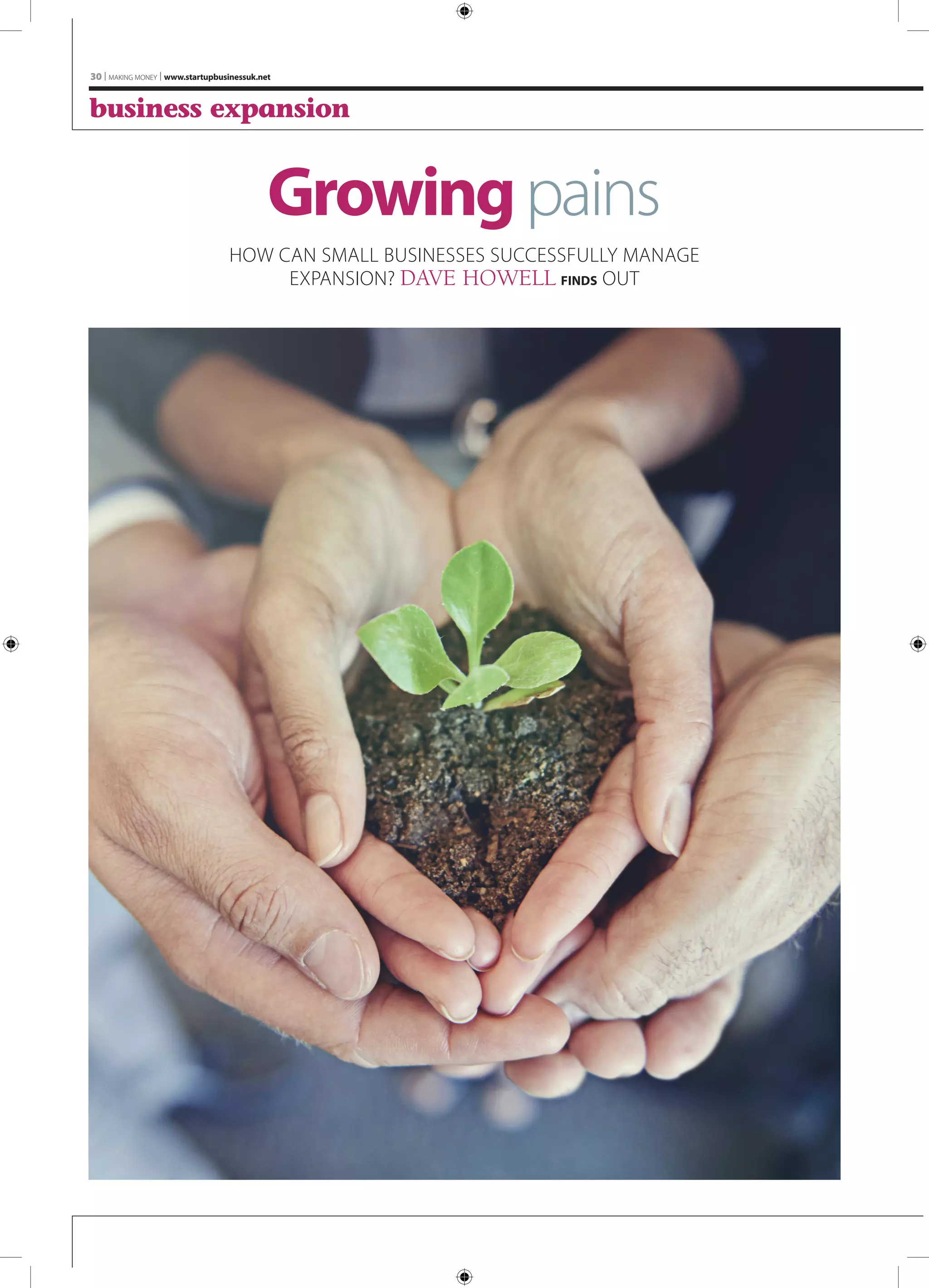 Small businesses may reach a tipping point where expansion is needed to avoid stagnation. While many small business owners are content maintaining their status quo, failing to recognize signs that demand is exceeding capacity could damage profitability. The document discusses different types of expansion such as growing market share, developing new products/services, and exporting. It emphasizes that expansion does not have to be expensive and can be achieved through calculated risks while maintaining core business processes. Planning is presented as the key to successful expansion.