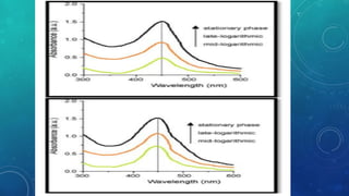 The document discusses the synthesis and characterization of cadmium sulfide (CdS) nanoparticles using a biological method involving Enterobacteriaceae strains. It explores optimal conditions for nanoparticle production, including pH and temperature, and characterizes the nanoparticles through various spectroscopic and microscopy techniques. The study concludes that the synthesized nanoparticles exhibit uniform morphology and a size range of 5 to 200 nm, with stability attributed to amino groups and protein as stabilizing agents.