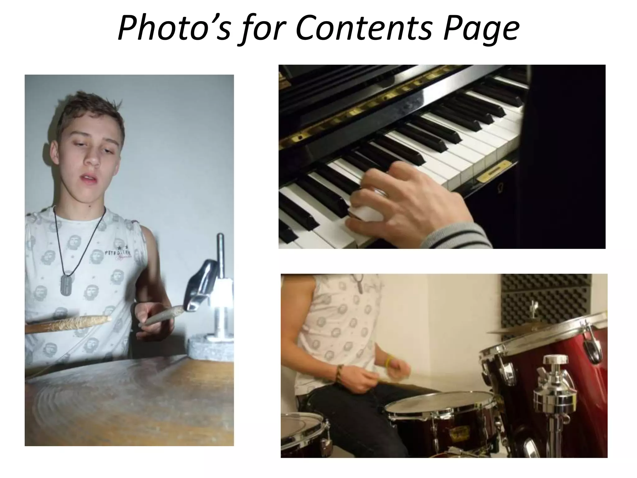 The document describes the process of designing a contents page for a magazine in Photoshop. It includes sketching a plan for photograph placement, establishing a red and white color scheme. Images were imported and edited, with techniques like magnetic selection and feathering edges used. Text and additional photos were added, wrapped around images to create flow. Shadows were applied to text for visibility. Social media logos were included at the bottom to mimic real magazines. The final contents page followed the cover's color scheme and included photos, page numbers, and text headlines connected visually.
